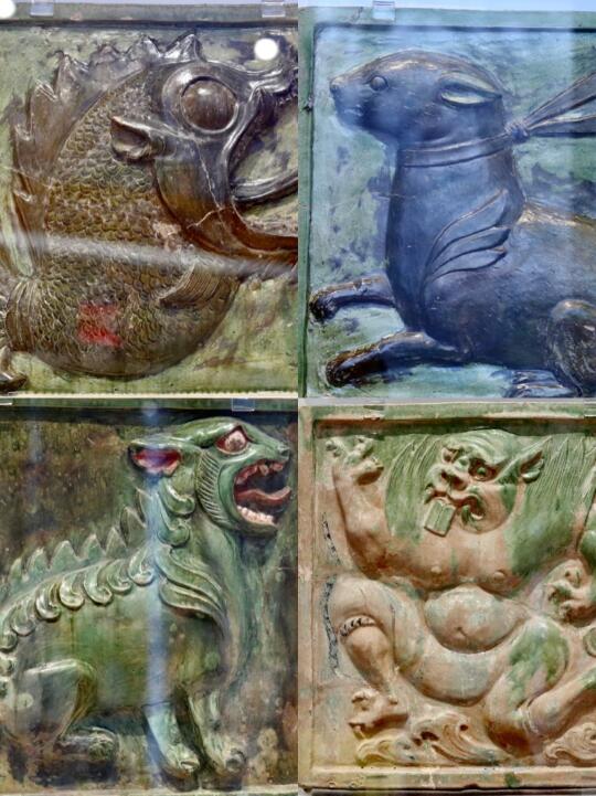 这一组南北朝北齐时期的怪兽诞生于中土,现藏于加拿大皇家安大略博物馆。 . 这些极具想象力的各色怪兽👾是秞彩陶砖上的浮雕纹样。 . p1-p5为高清扫描图片,p6-p7为安大略博物馆现场拍摄图片(该博物馆玻璃非常反光) . 这批文物制作之初可能被用以充当镇墓兽。以畏兽形象居多,畏兽是魏晋南北朝时期墓葬常见的形象,其特征为兽面人身,肩生羽翼。 . 但很不幸的这批文物最终流失海外,来到了加拿大多伦多。