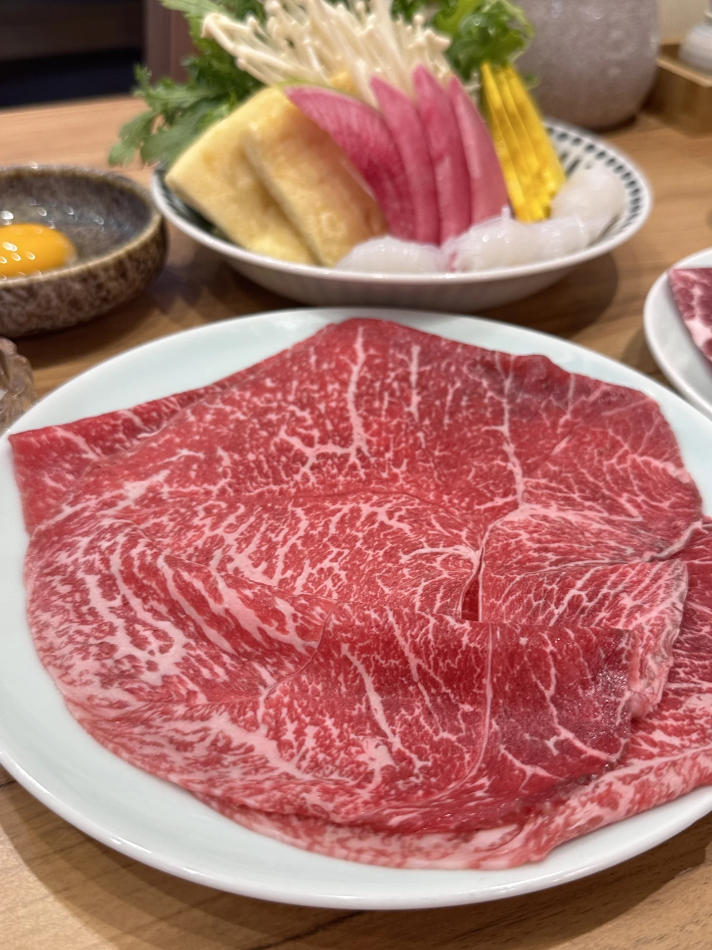 铜锣湾到底还藏着多少美食哇!! 本地人都去排队的牛寿喜锅 日式风格,推荐坐窗边,氛围感拉满 我选了寿喜烧锅 日本黑毛和牛A4赤身/美国安格斯牛肉 hk🇭🇰的牛肉都值得一试,肉质很不错,新鲜,油脂丰富又不腻