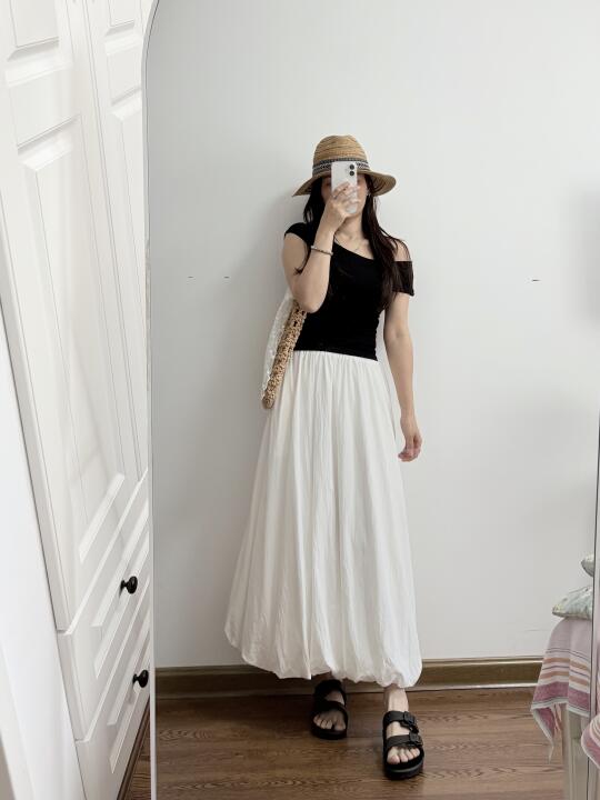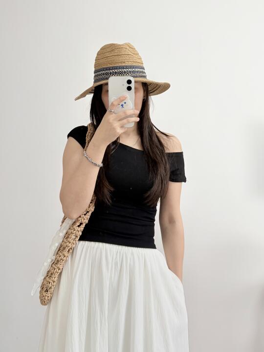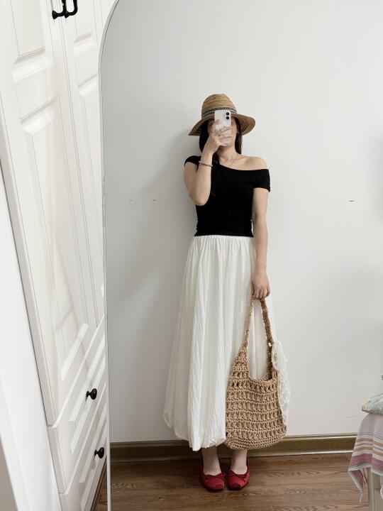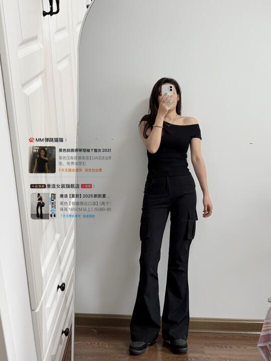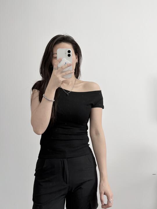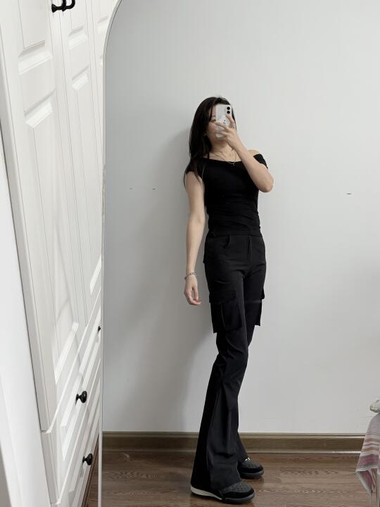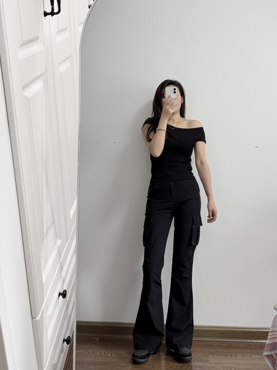 一件斜肩上衣,配裙子是乖乖女~ 配工装裤是帅气酷gril~ 上衣是纯棉的,可以一字肩也可以斜肩, 苹果身材就是要适当露肤才显瘦~ 工装裤子是滑滑的料子,薄薄的,很柔软。但是尺码有点偏小,我要穿M码加长款会合适一些。 良心分享,live图实出,所见即所得‼️