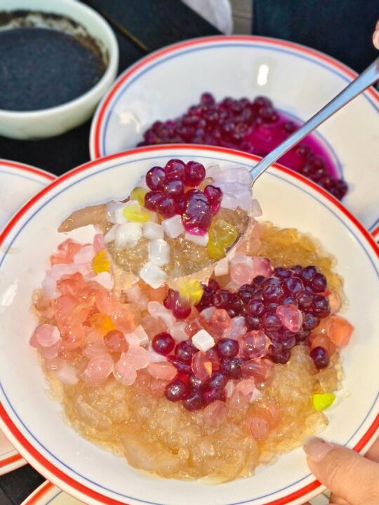 真的太喜欢他家的小院啦,独立小院儿设计的很仙儿,树上挂满风铃,风一吹铃铃作响🔔青岛的春天完全可以坐在户外吃,微风吹过真的很舒服 ❤️他家主打青岛地道的本帮菜,基本属于闭眼点不踩雷的 ✔️这次吃到了一个新品,真的给我惊掉下巴了。一大颗榴莲上插满了蛤蜊肉,这到底是哪个大聪明想出来的创意阿?奇奇怪怪的搭配没想到还意外的很好吃 ✔️特色的海鲜烫面包子也真的很有料,小银鱼、螃蟹肉、海胆、鲍鱼…实在的青岛大姨把馅儿塞得满满的,生怕我们吃不到这份鲜 ⭐平价实惠的小店,如果不是本地人带路,大概率是找不到吧