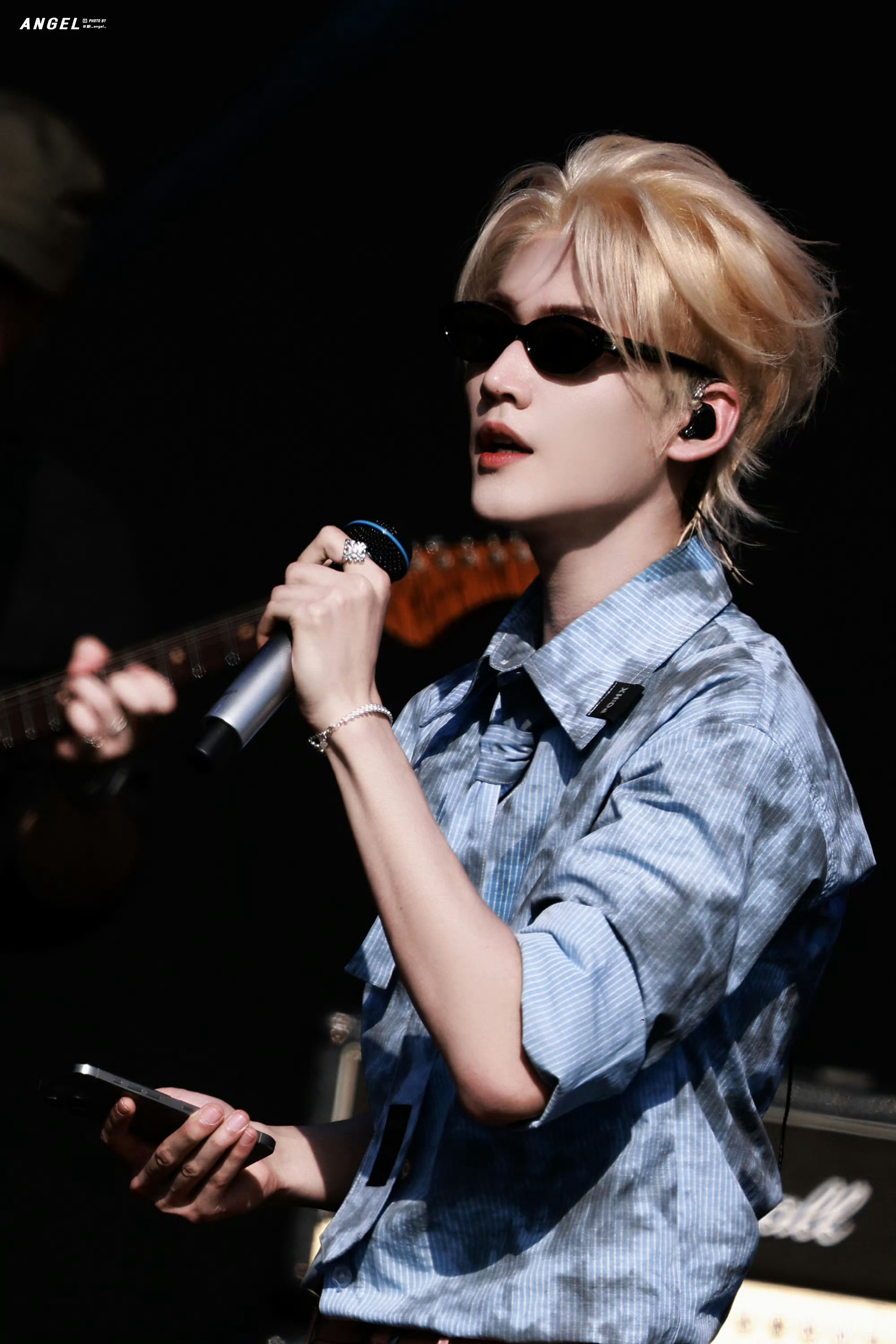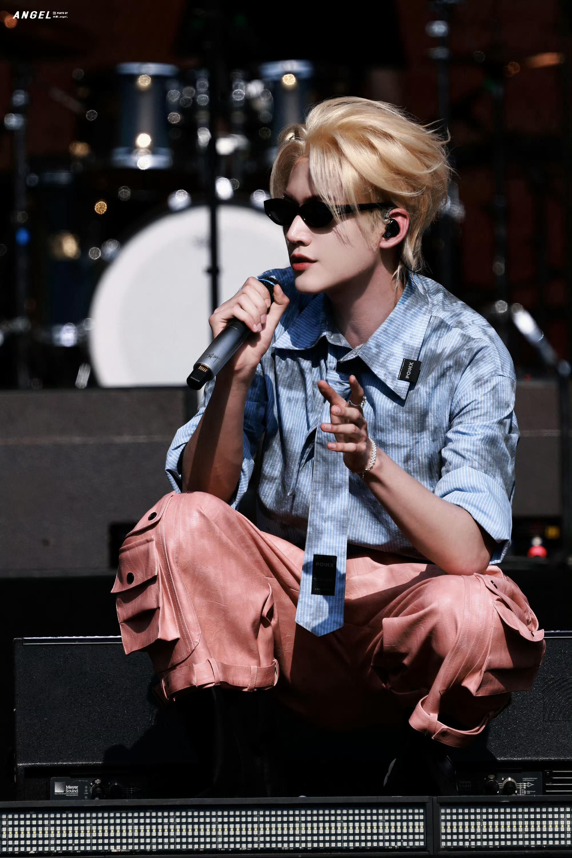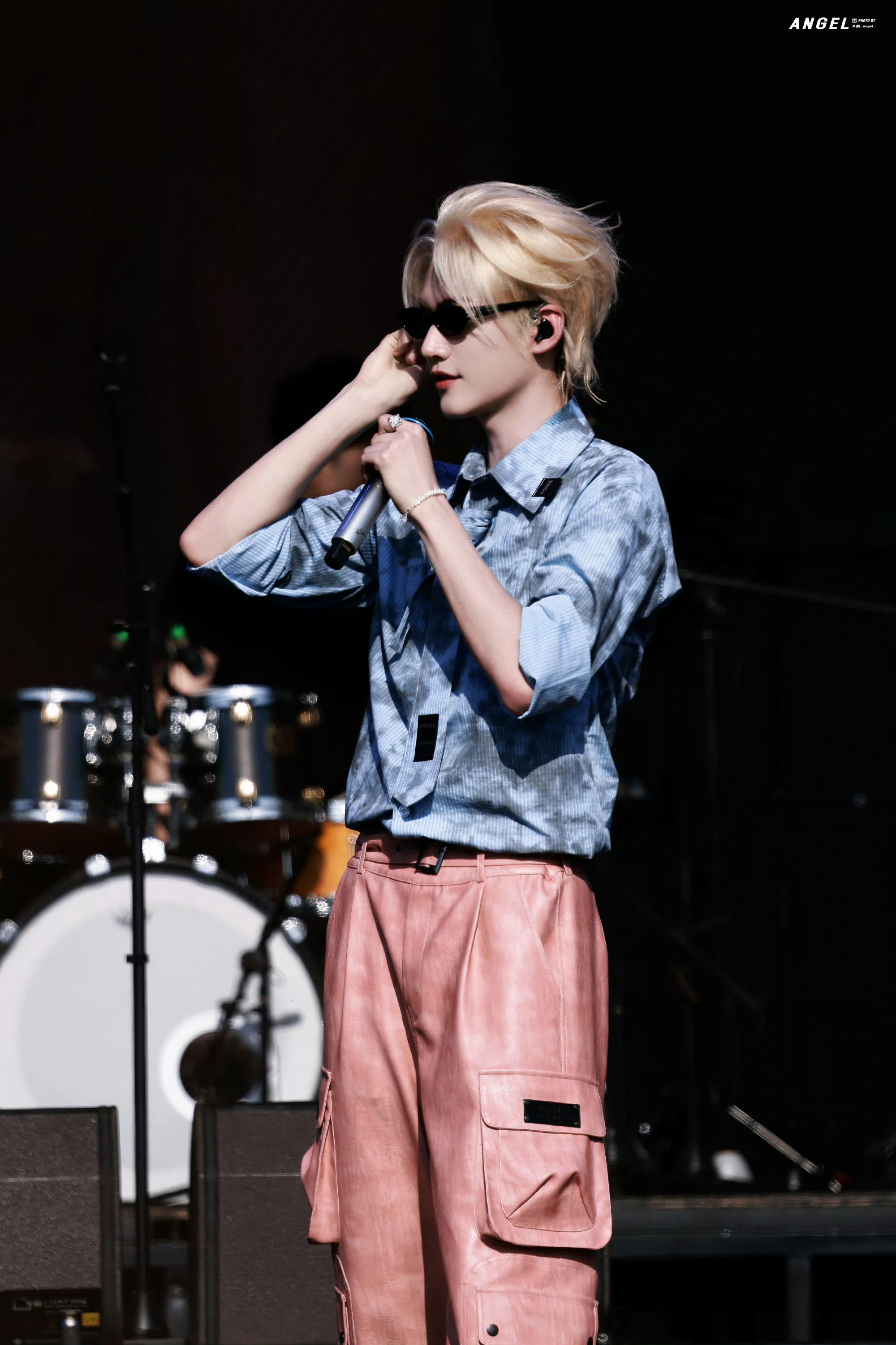 罗云熙机场音乐节,这个粉发有点好看🔥