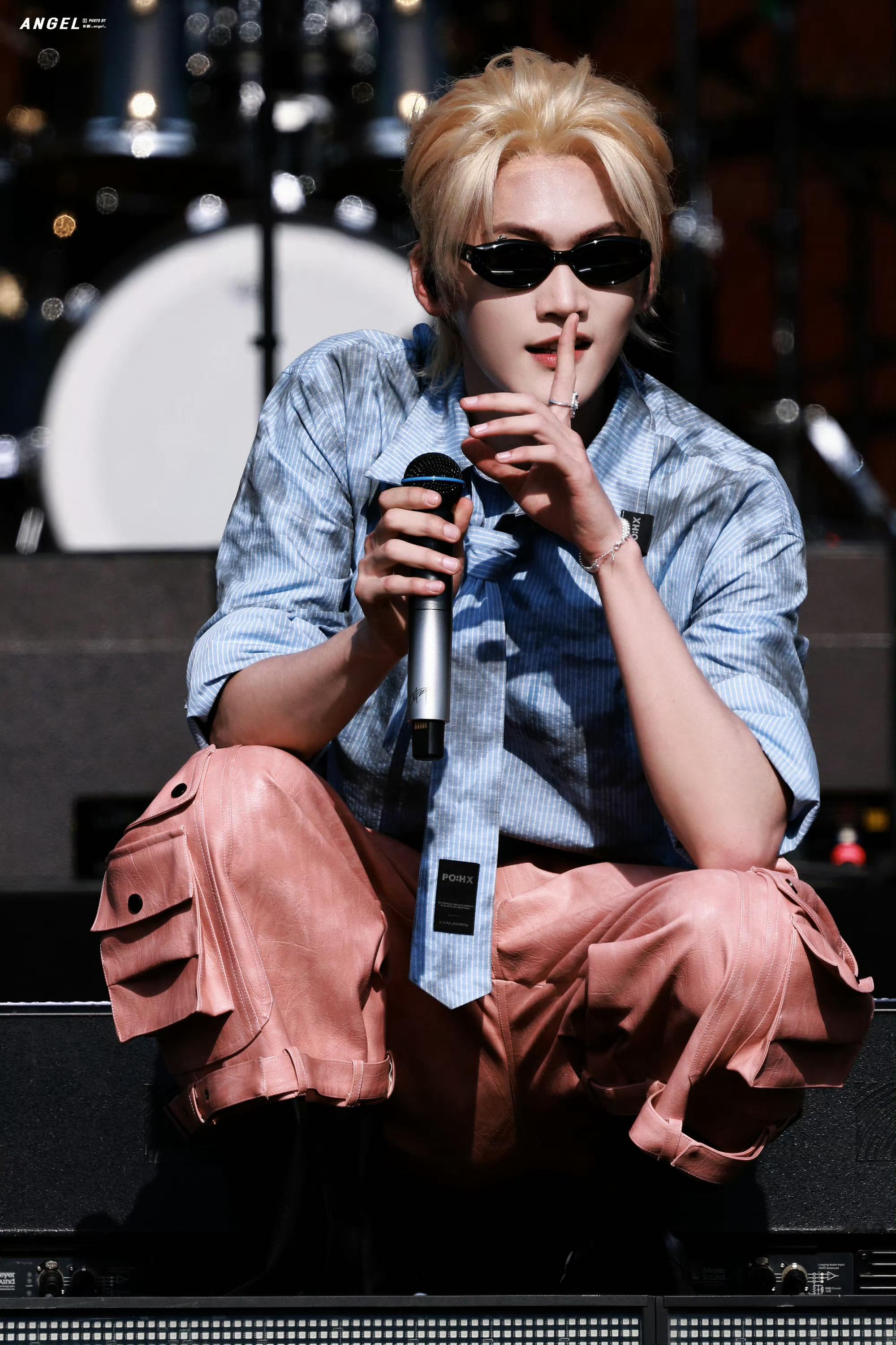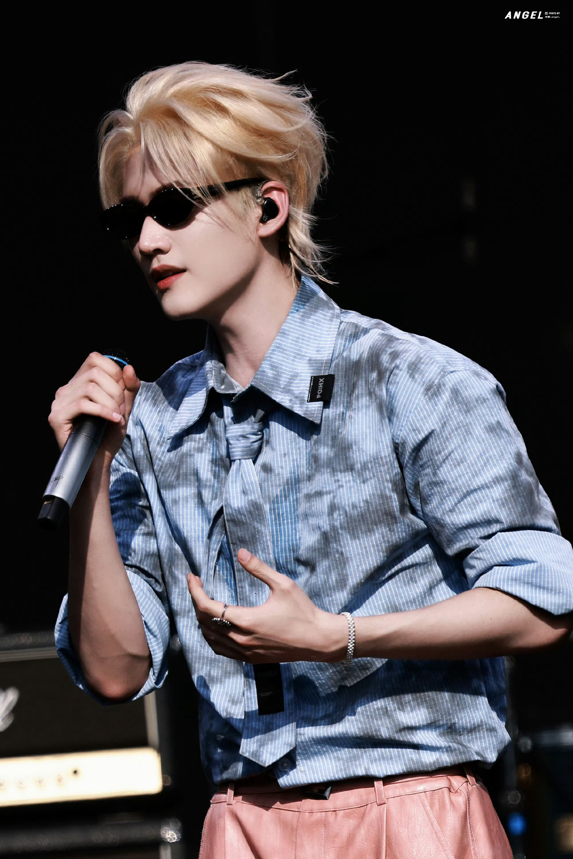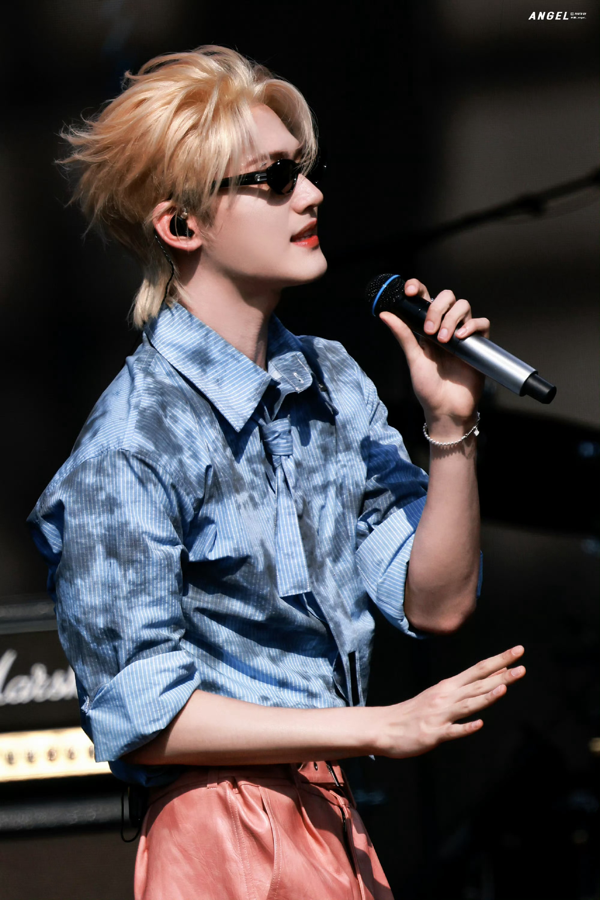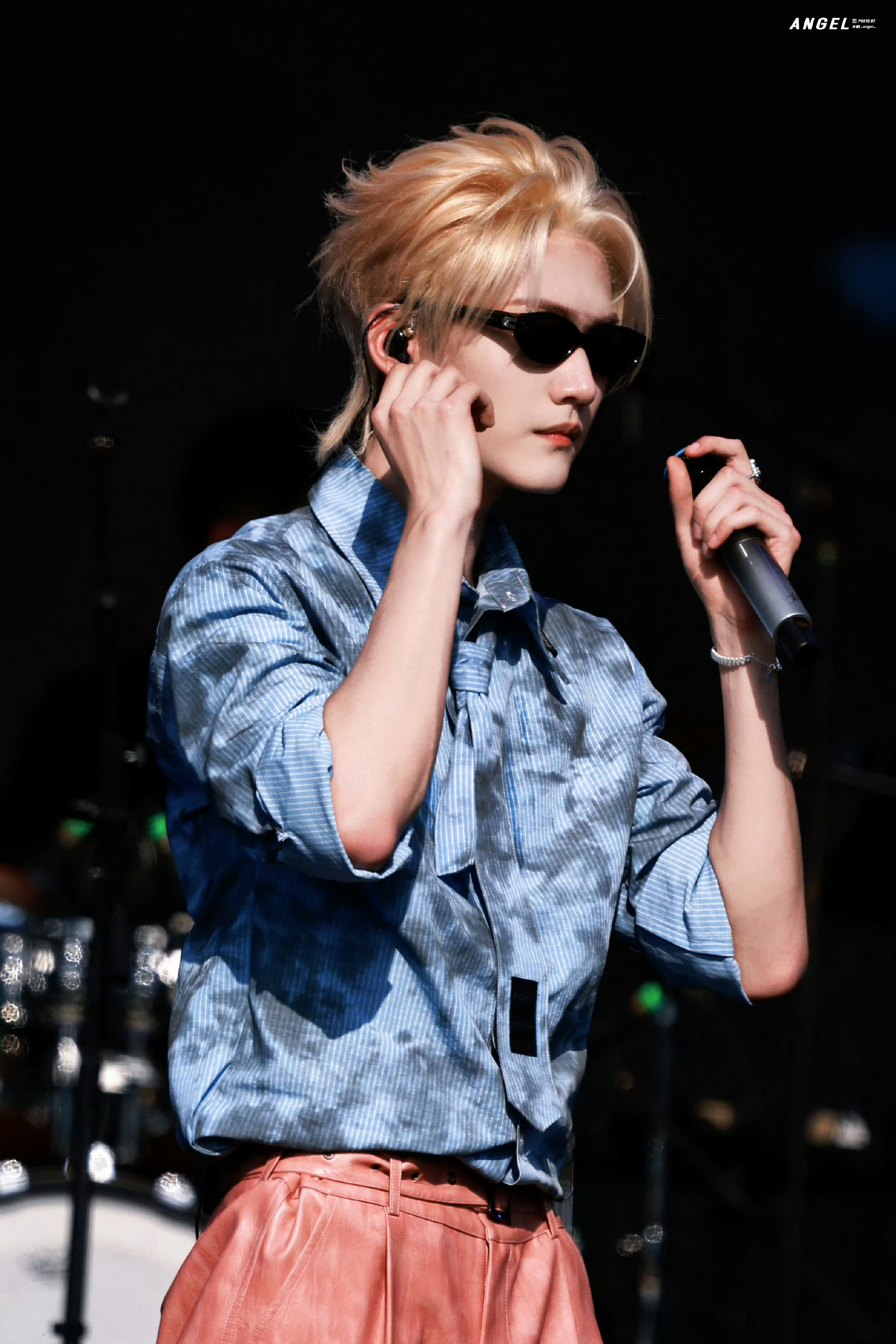罗云熙机场音乐节,这个粉发有点好看🔥