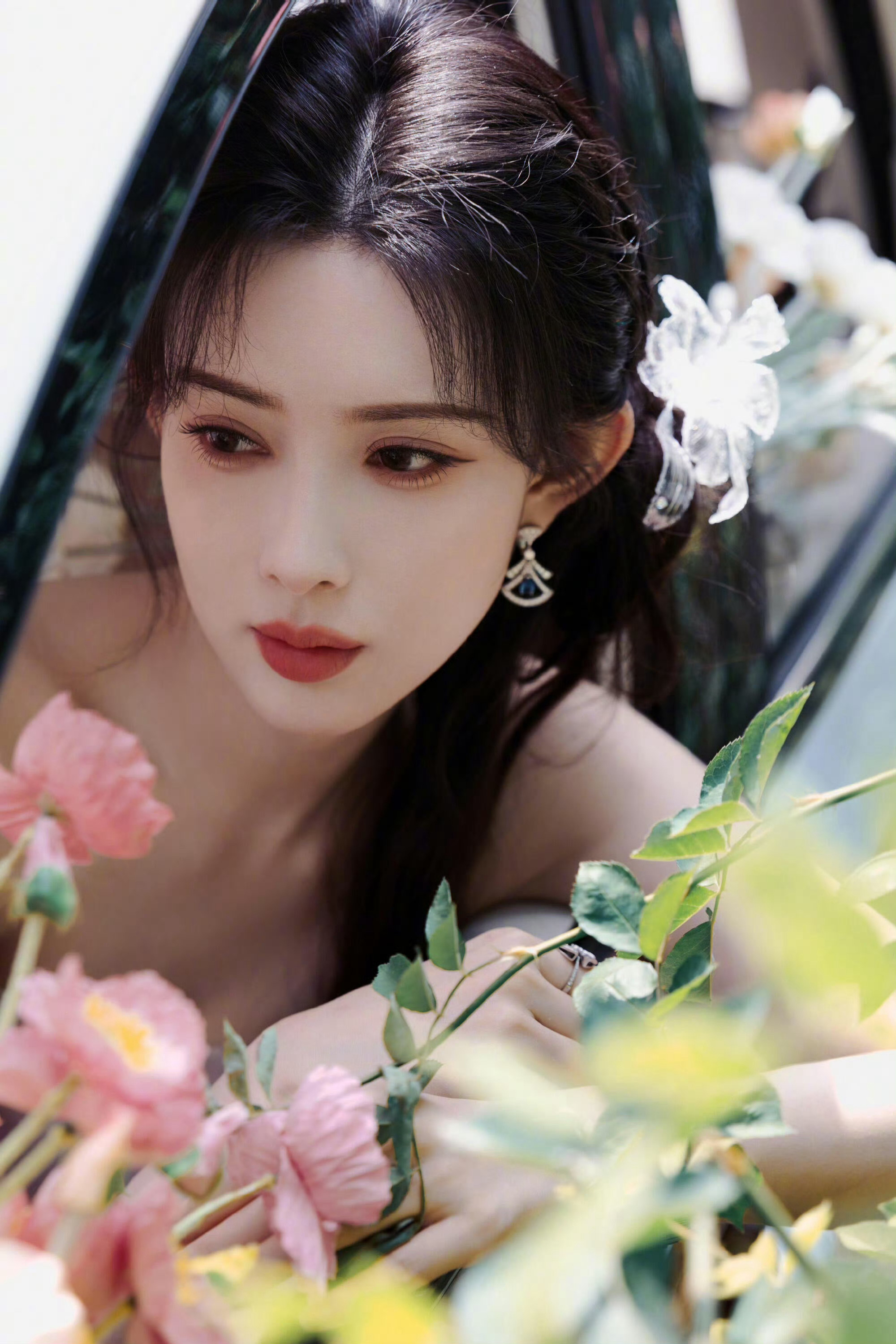 刘亦菲这一身衣服太丑了,用花挡住了才觉得好一点,全靠脸撑着