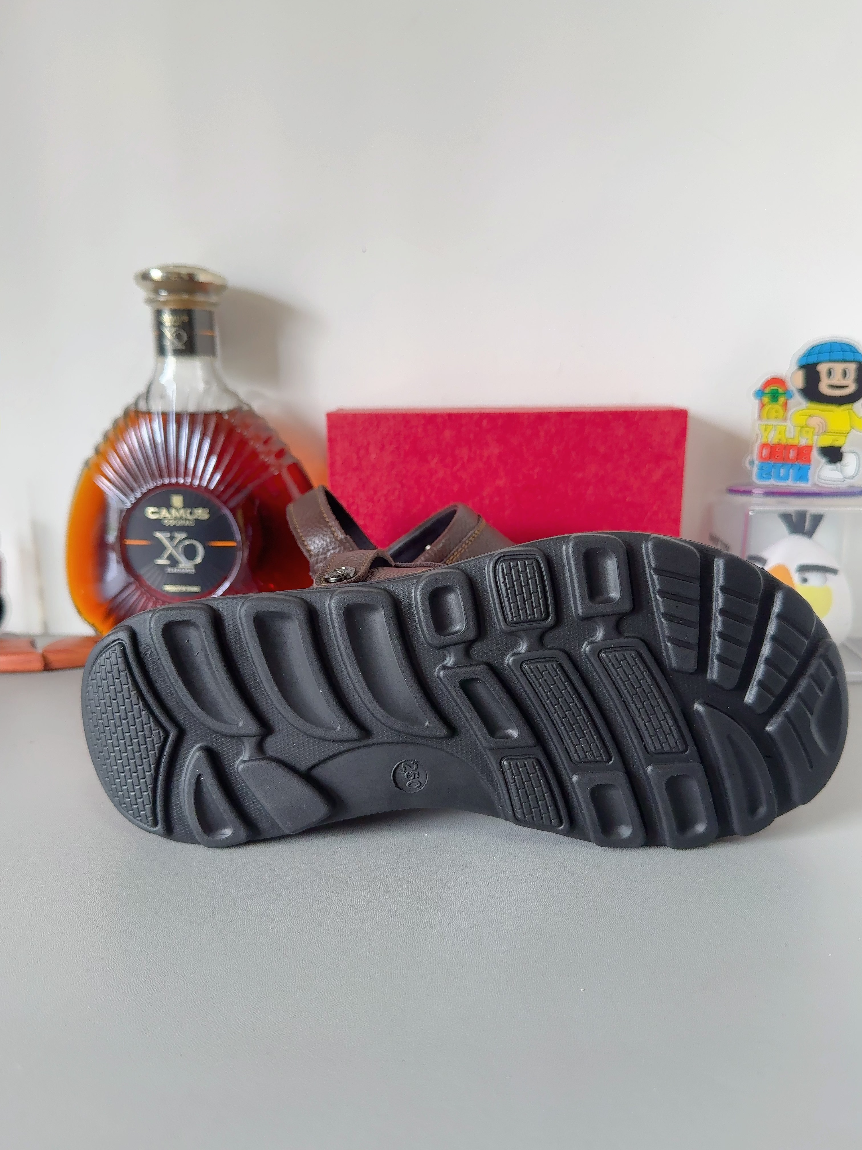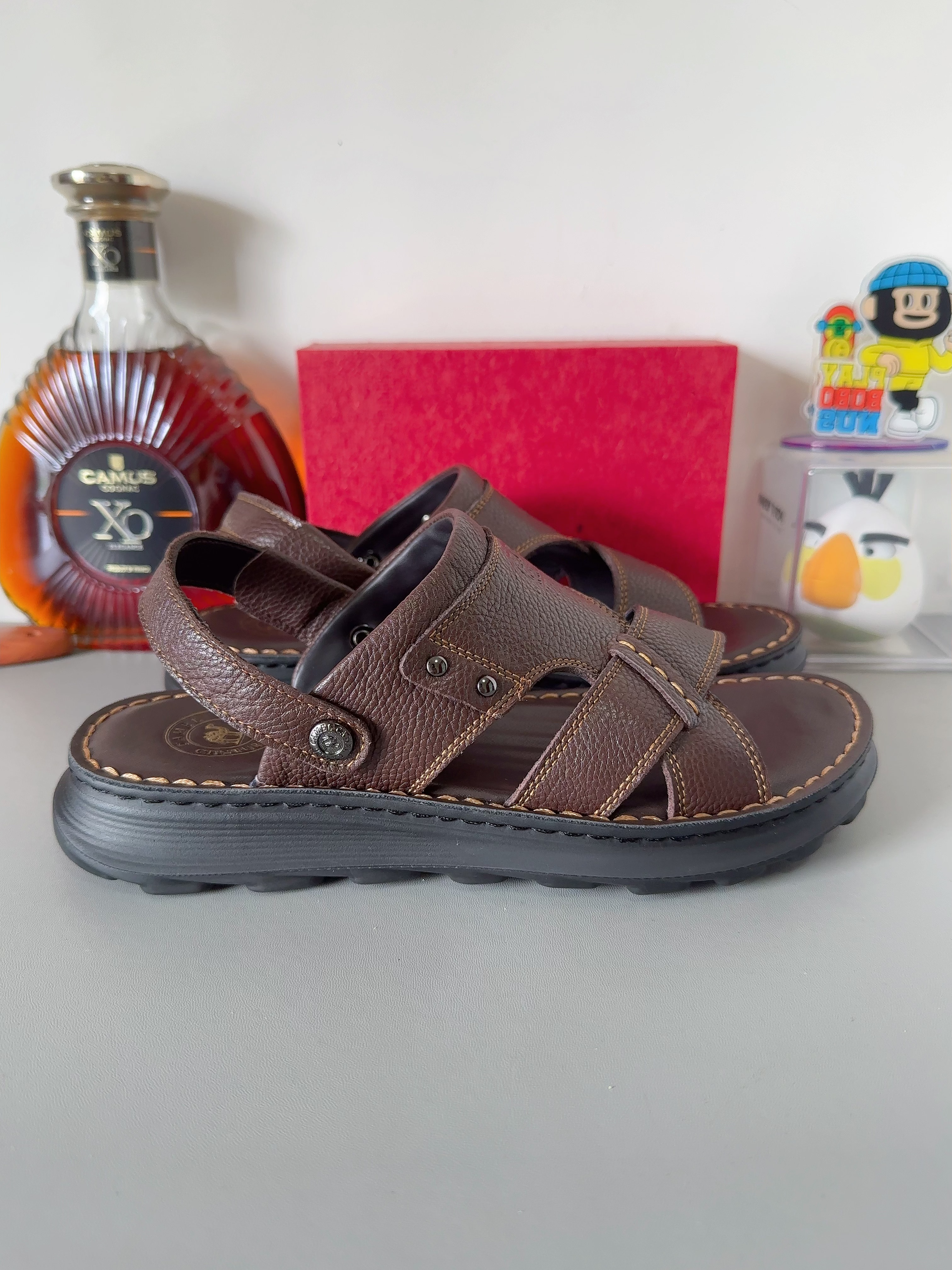 这双凉拖鞋床超软,鞋面真牛皮质感超好! 上脚舒服!自己穿也可以买长辈穿也不错 中底它是填了乳胶啊,一般的这种凉鞋要软很多很舒服,而且后面还可以调节也可以当拖鞋去穿,非常的方便!