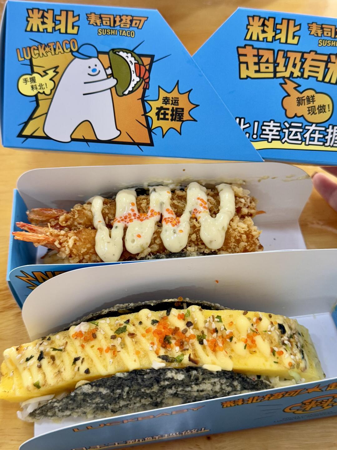 长沙塔可,这家必须拥有姓名啊啊啊!!! 真的没有人会不爱吧。长沙大学城排队王的程度 吃过的都会喜欢!很大一个~厚烧玉子和天妇罗炸虾🍤 这两款是我和朋友的最爱😍简直好吃s啦! 👉料北寿司(五一开业买1️⃣送1️⃣)