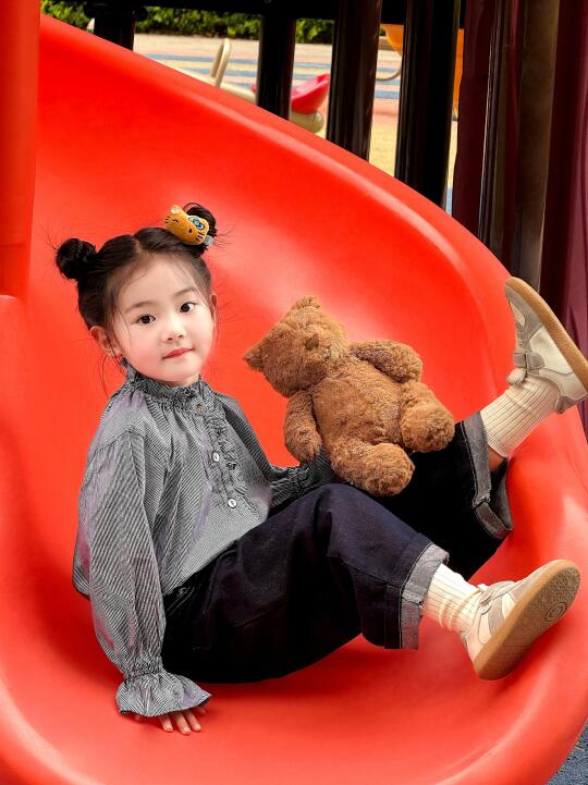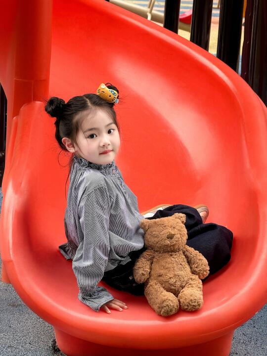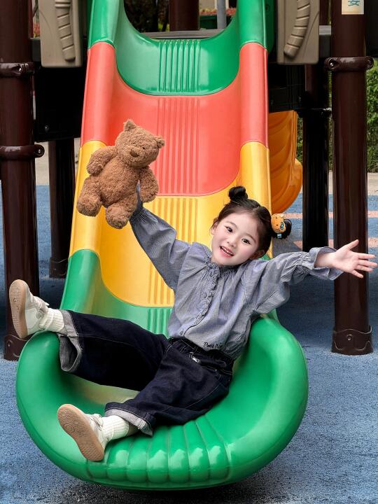 骗你生女儿 人类幼崽可以多可爱 游乐园 永远相信童话 滑滑梯拍照 照片就是越随意越生动