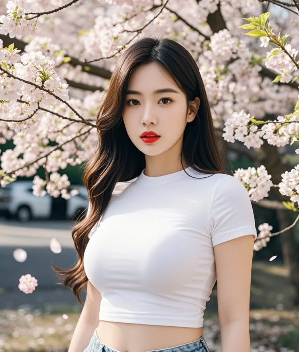飘落的花瓣与她的颜值,绘就春日最慵懒的画