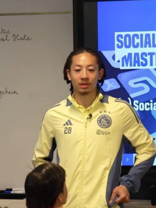 阿贾克斯官方社媒发布视频,华裔球员天乐作为代表前往荷兰的学校分享他的受歧视和网暴的经历。