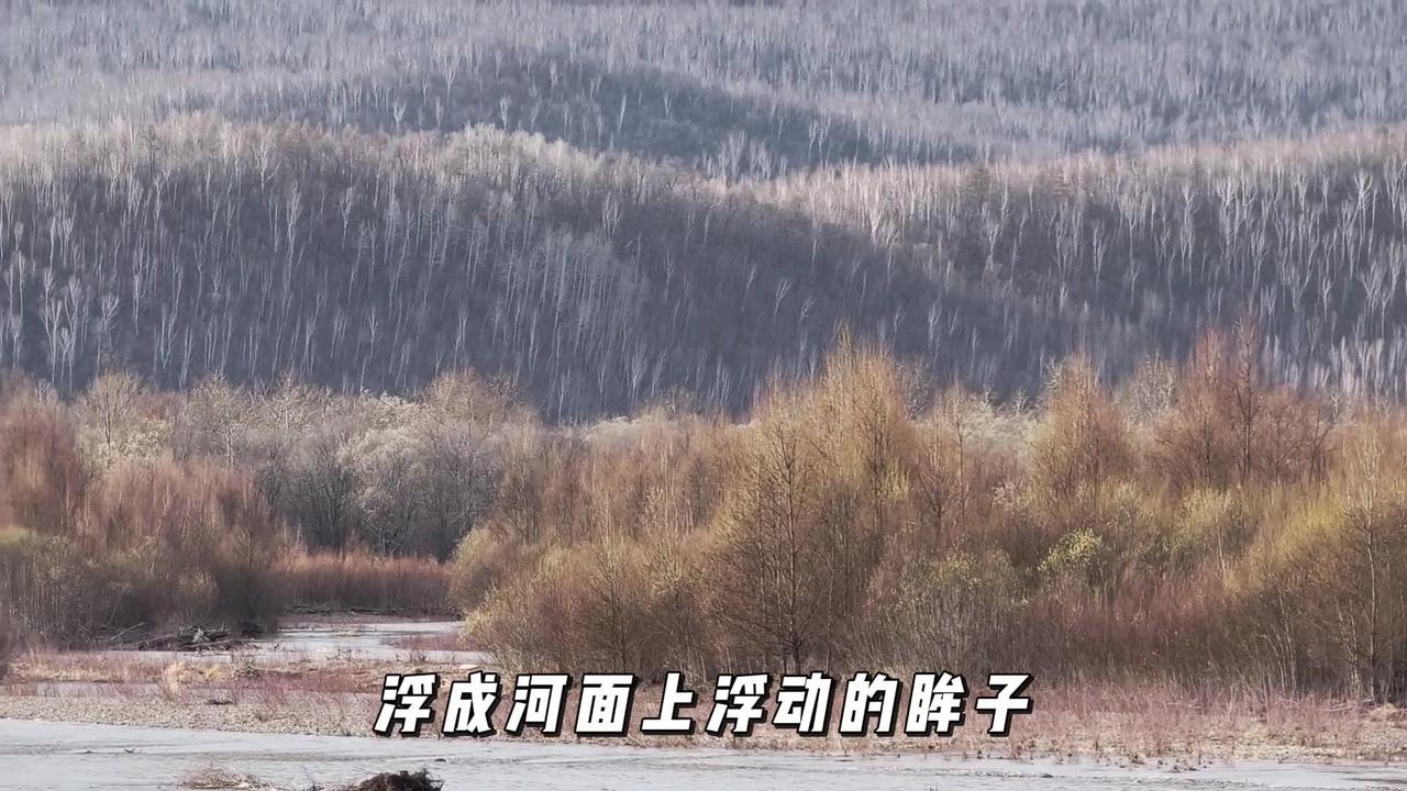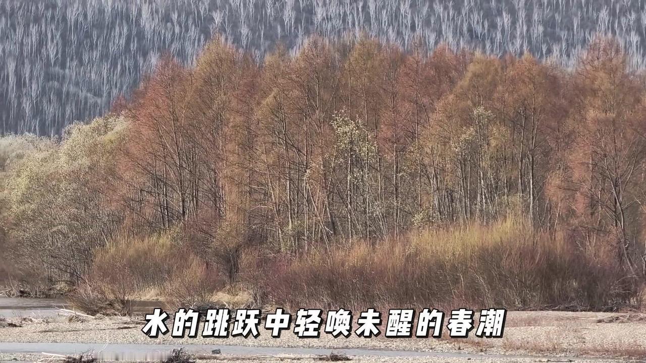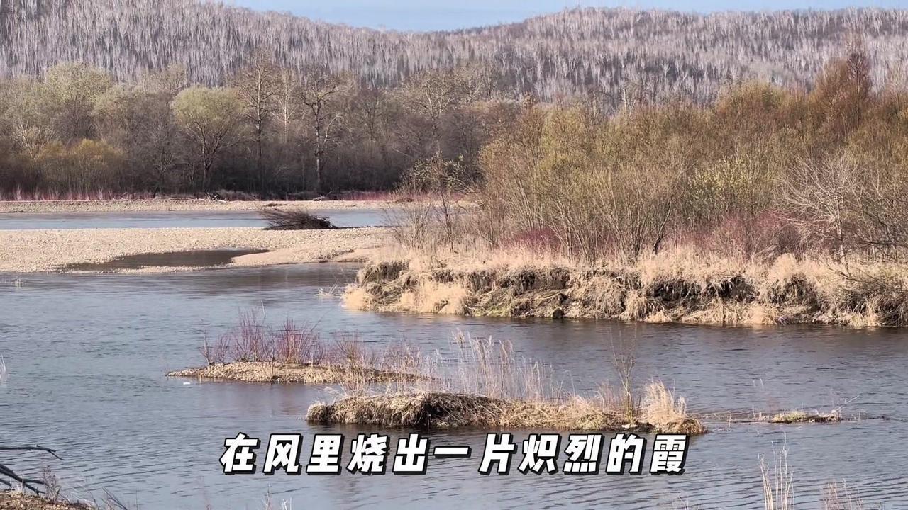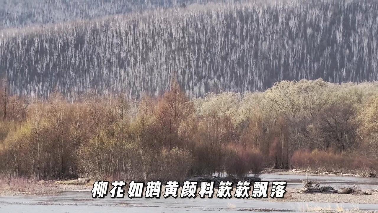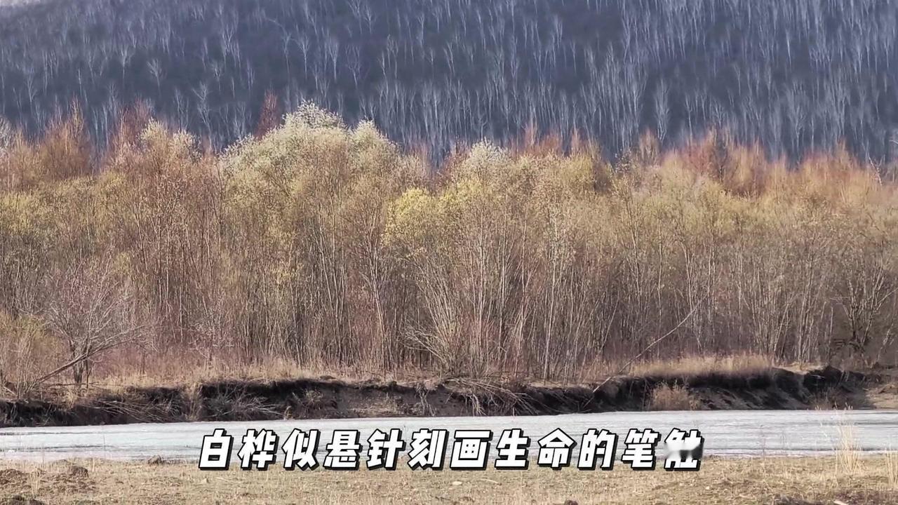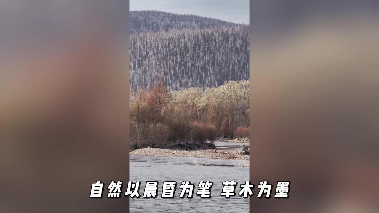 🌲在大兴安岭,春山是一幅流动的板画。 1️⃣带青色的山峦如墨笔勾勒,白桦似悬针刻画生命的笔触,红柳发出热情的邀约,在风里烧出一片炽烈的霞。 2️⃣干涸是画布上凝固的蓝,水的跳跃中轻唤未醒的春潮。 3️⃣柳花如鹅黄颜料,速速飘落,浮沉河面上,浮动的眸子。 4️⃣自然以晨昏为笔,草木为墨。