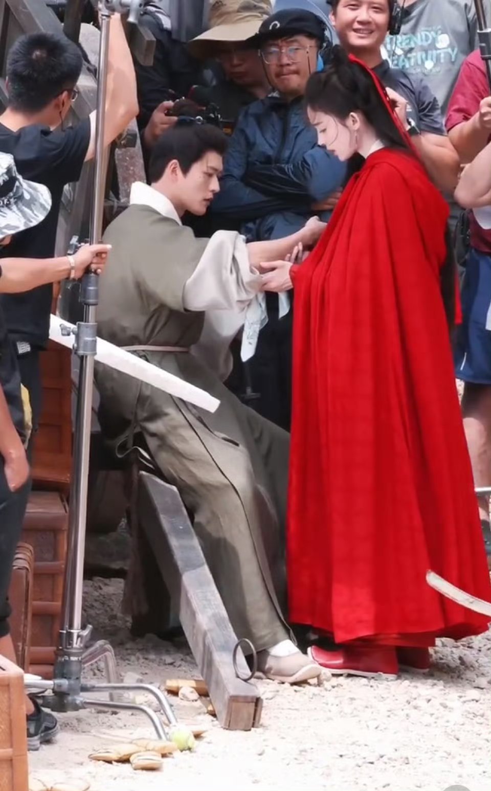 娜扎红色斗篷路透,好明亮!
