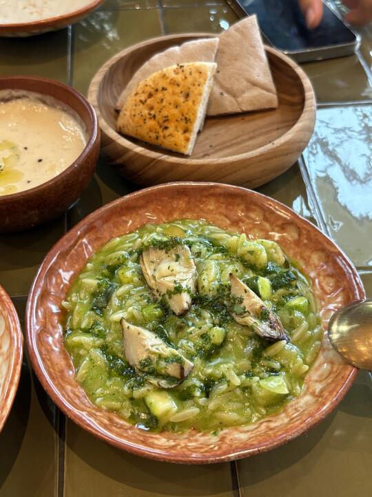 4⃣️做成饭的pasta➕芦笋➕洋蓟 卖相不大行 闭着眼吃下意外的还不错 (这道菜分量真的很小 有点惊到 但吃完全部又非常饱 后面主食蛮大份的[黄金薯R]