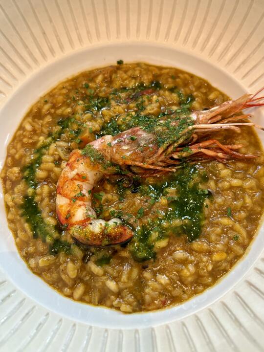 5⃣️烧烤蓝虾饭 ❤️paella脑袋很满意!!夹生饭口感很好 也不会咸😋 调味很合我口味 虾很大个但只有一条 一大碗吃完立马饱了 端上来盘子还是热盘