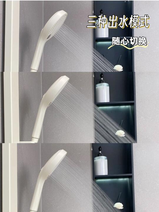 手持花洒有三种出水模式,多种淋浴体验随心切换,背部还有喷枪功能,水流冲击力强劲💦轻松冲洗各种犄角旮旯,而且采用的是硅胶出水口,水垢一揉就掉不会堵