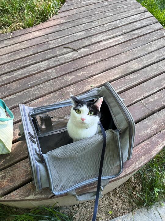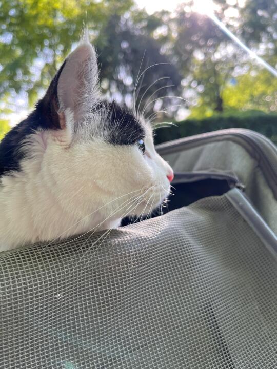 五一好天气领着元宝出门逛公园 小猫又好奇又害怕的 只敢把头伸出来这一点点距离 不知道小猫喜不喜欢出门玩