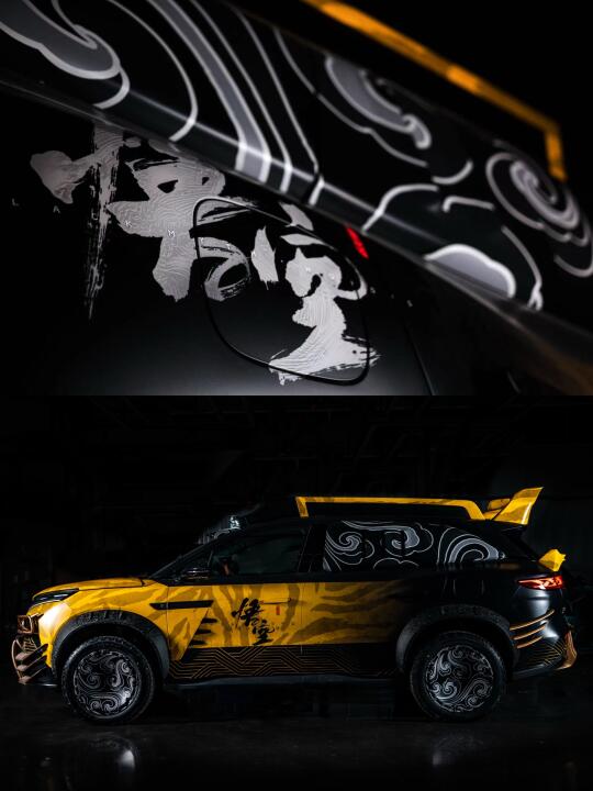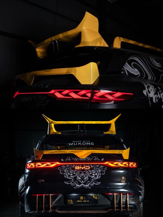 本周上海车展,BYD展台展出了四台与黑神话·悟空联名的四台官改车。