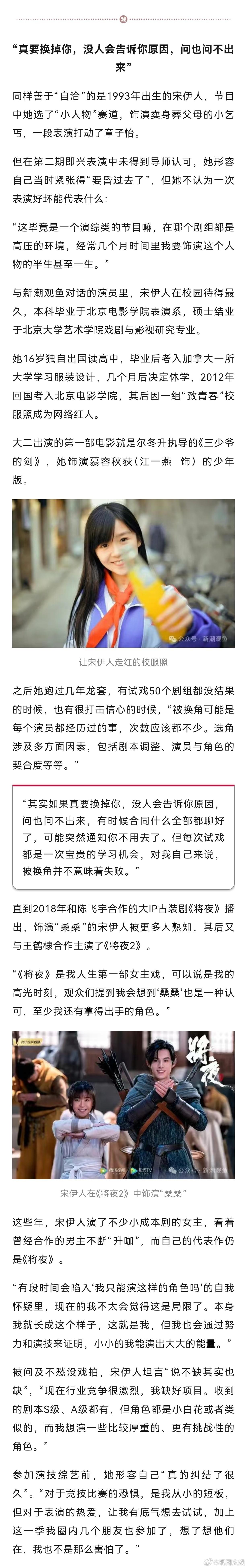 被选择的腰部演员想被看见【对话“腰部”演员:与其等着被选,不如主动刷脸】近日,新潮观鱼独家对话五位新生代演员——、、、、。他们中有“童星”出身的科班演员、有女团“门面”转型的演技新人、有出道就小范围打响名号的古偶女主,还有通过“正剧”弯道超车的年代剧配角。