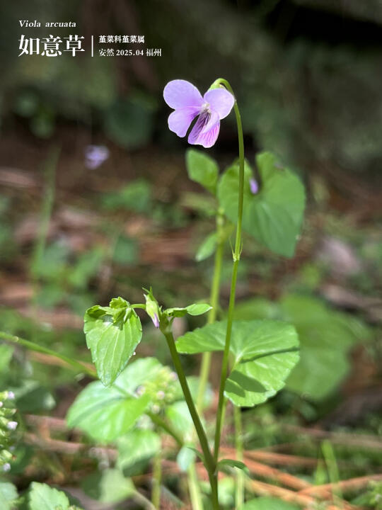 如意草是堇菜属的植物,跟一般堇菜属植物不同的是,如意草有发达的地上茎,花淡粉紫色或白色,下方花瓣有明显的暗紫色条纹。