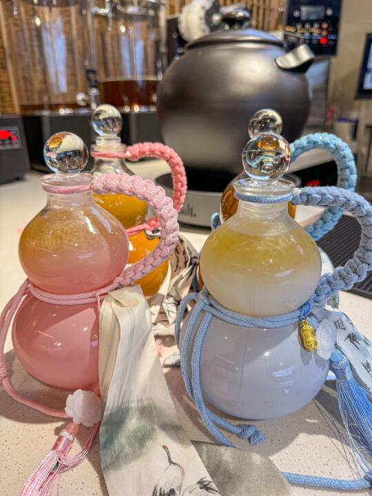 在杭州挖到一家超绝的新中式茶饮店,直接戳中我的心巴💕! 茶饮都是超有韵味的新中式风格,最惊艳的是杯子竟然是葫芦造型!拿在手上,古风氛围感直接拉满,拍照发朋友圈分分钟被问爆📍! 店铺三楼有超棒的景观位!逛累了来这儿歇脚再合适不过,简直是“充电”的绝佳好去处~ 不管是想找个地方安静休息,还是和姐妹打卡拍照📷,这家店都能满足!