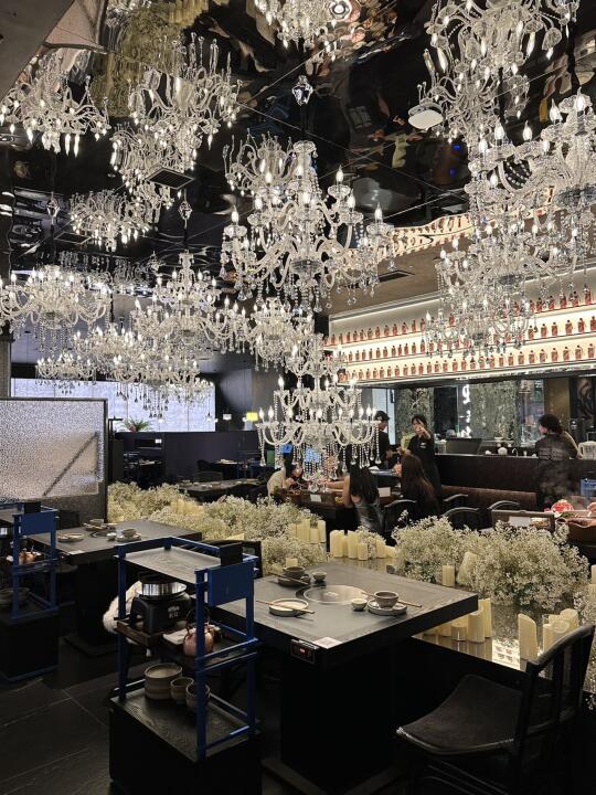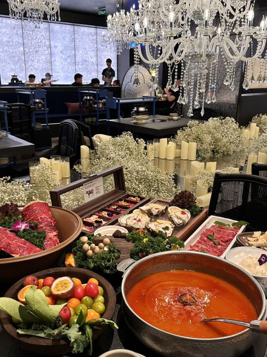 解锁新体验啦 之前都是吃的传统火锅 第一次尝试贵州酸汤火锅☑️ 这家环境绝美 偏欧式的装修风格 华丽的水晶吊灯 氛围感瞬间拉满 🥘 当然 美食才是重头戏! 他们家的酸汤火锅好吃又正宗 点了份黑金六拼牛肉拼盘 包含吊龙 牛板腱 牛舌 五花趾 牛油 牛肋条 六个部位的肉肉 最喜欢牛油和吊龙 现切的牛肉鲜嫩无比🥩 每一口都是享受 其他菜品品质也很nice 基本上没有踩雷 关键店里蔬菜还都是0r!🥬咱真的别太爱了 - 📍银耳贵州酸汤牛肉火锅 国金和万象城都有门店喔