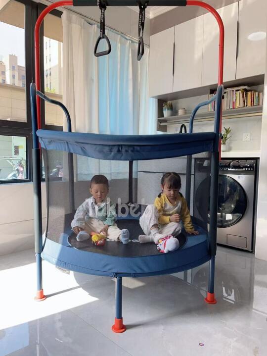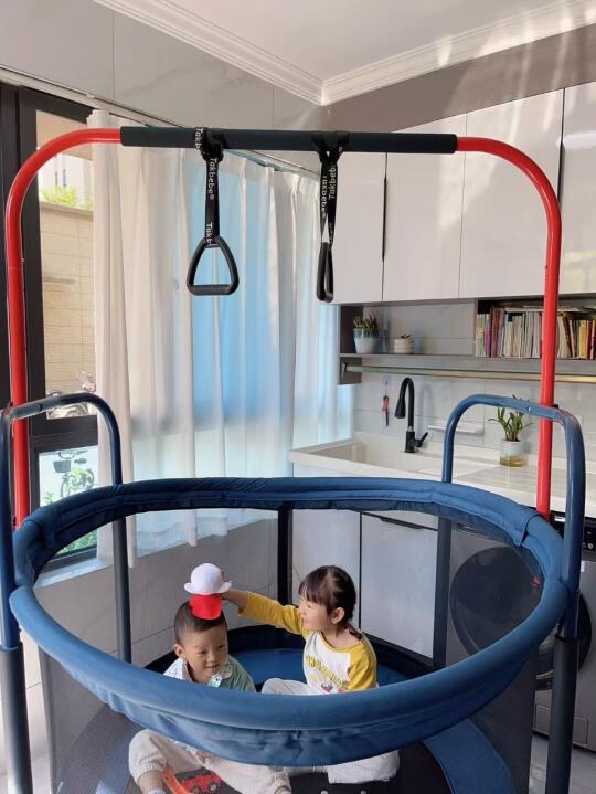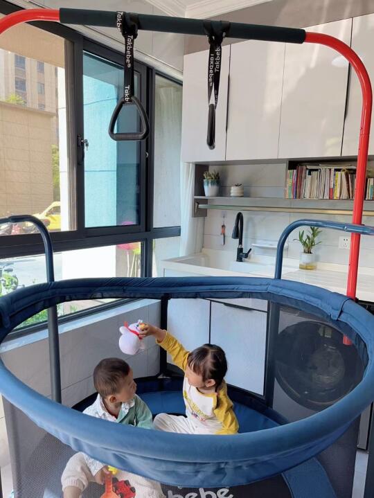 给宝宝入了塔克贝贝蹦床,组装完直接被圈粉! ✔️ 扶手高度能调, toddler也能稳稳抓握 ✔️ 全包防护网+防夹脚蹦布,老母亲全程放心躺平 ✔️ 蹦床秒变“海洋球池”,搭配吊环还能练上肢 宝宝在上面笑到打鸣,放电神器实锤! 每天10分钟=慢跑半小时,长高+健身双开挂~