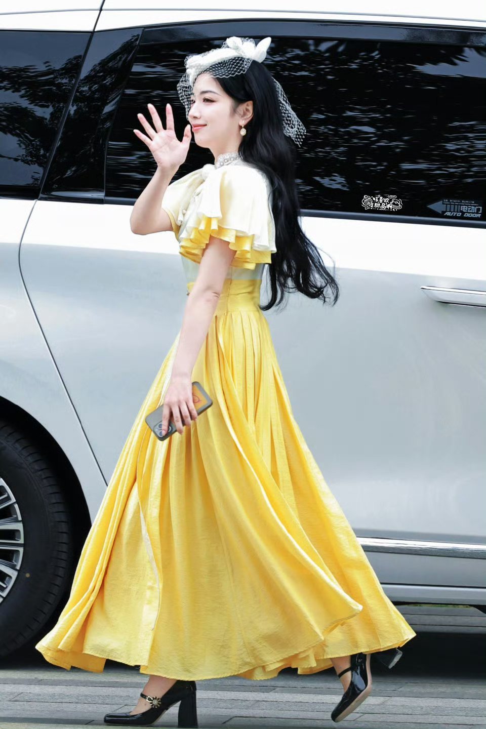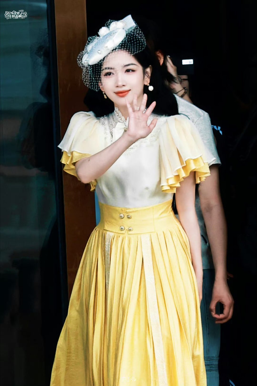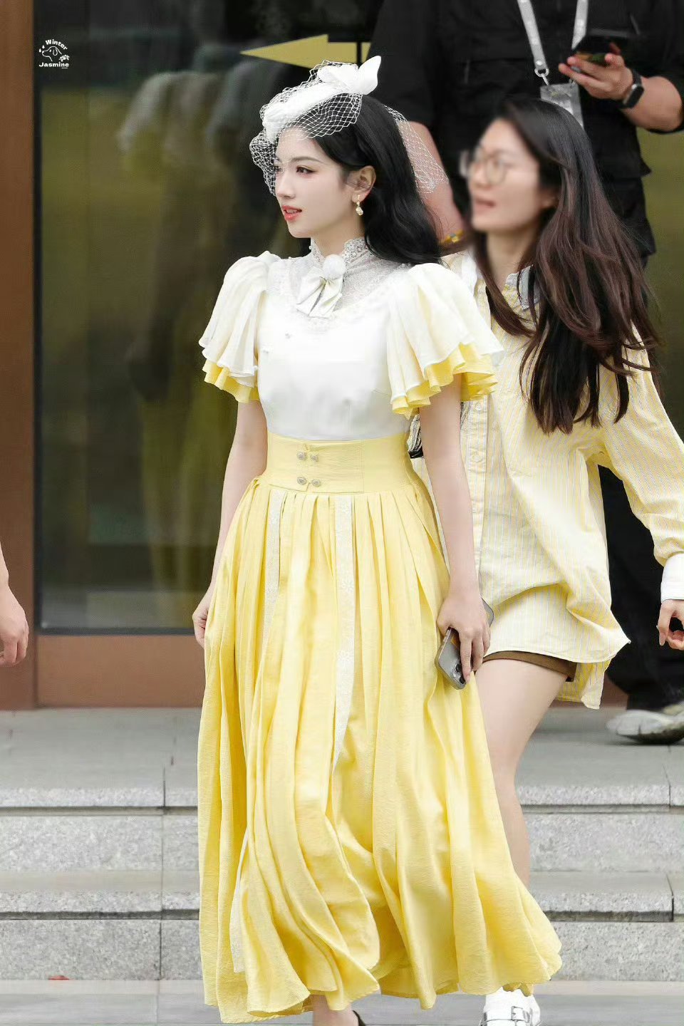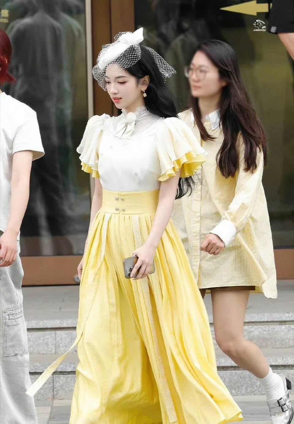 代露娃首录奔跑吧,鹅黄色裙子好看!