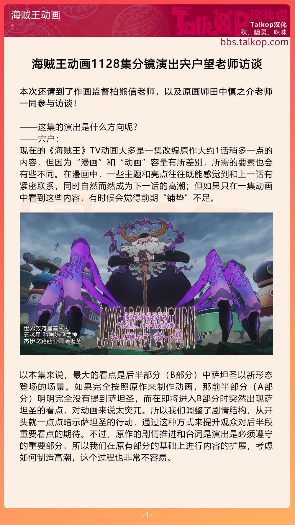 【TalkOP汉化】海贼王动画1128集分镜演出宍户望老师访谈