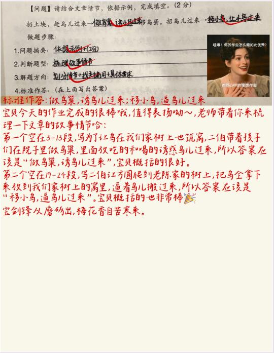 🔴 红色圈出"动作指令"(如"概括""赏析")。