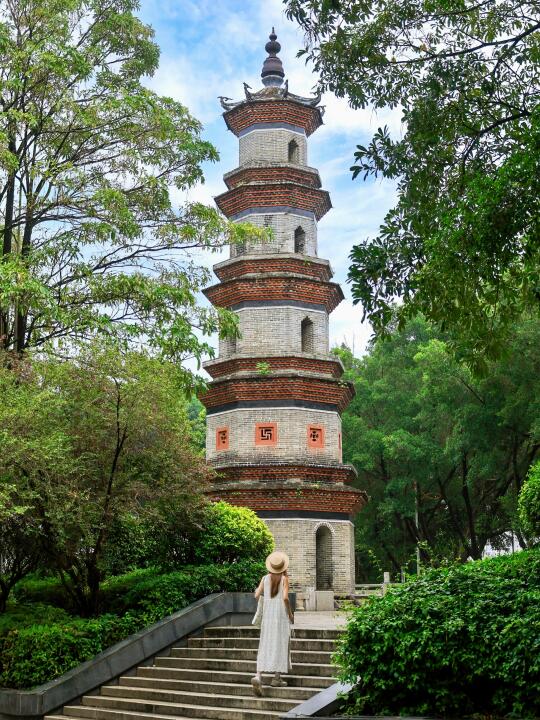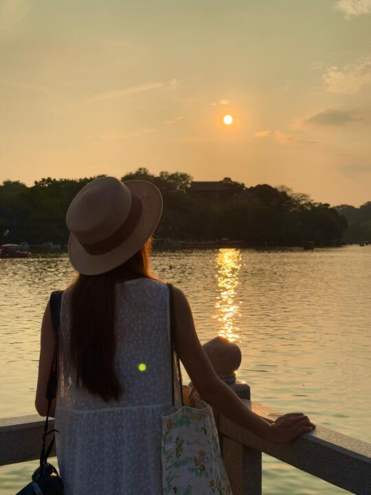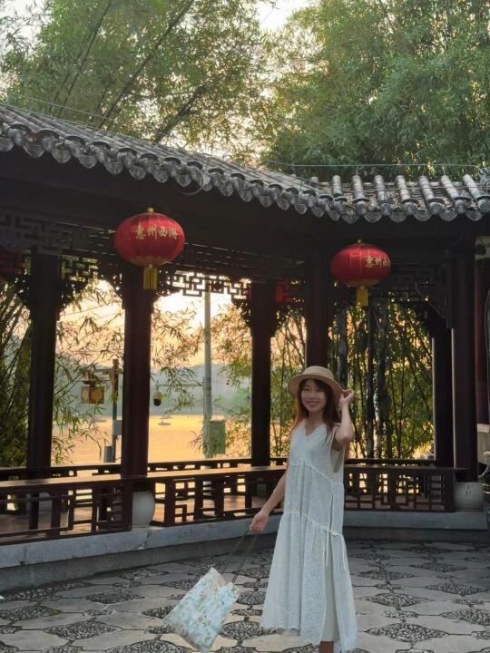 1️⃣九曲桥上拍西湖和泗洲塔合影
