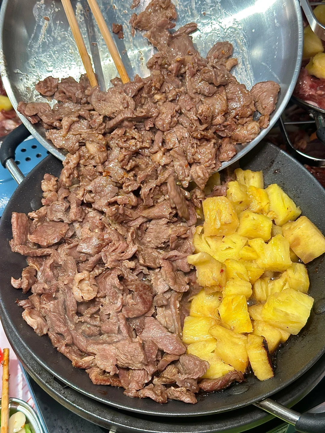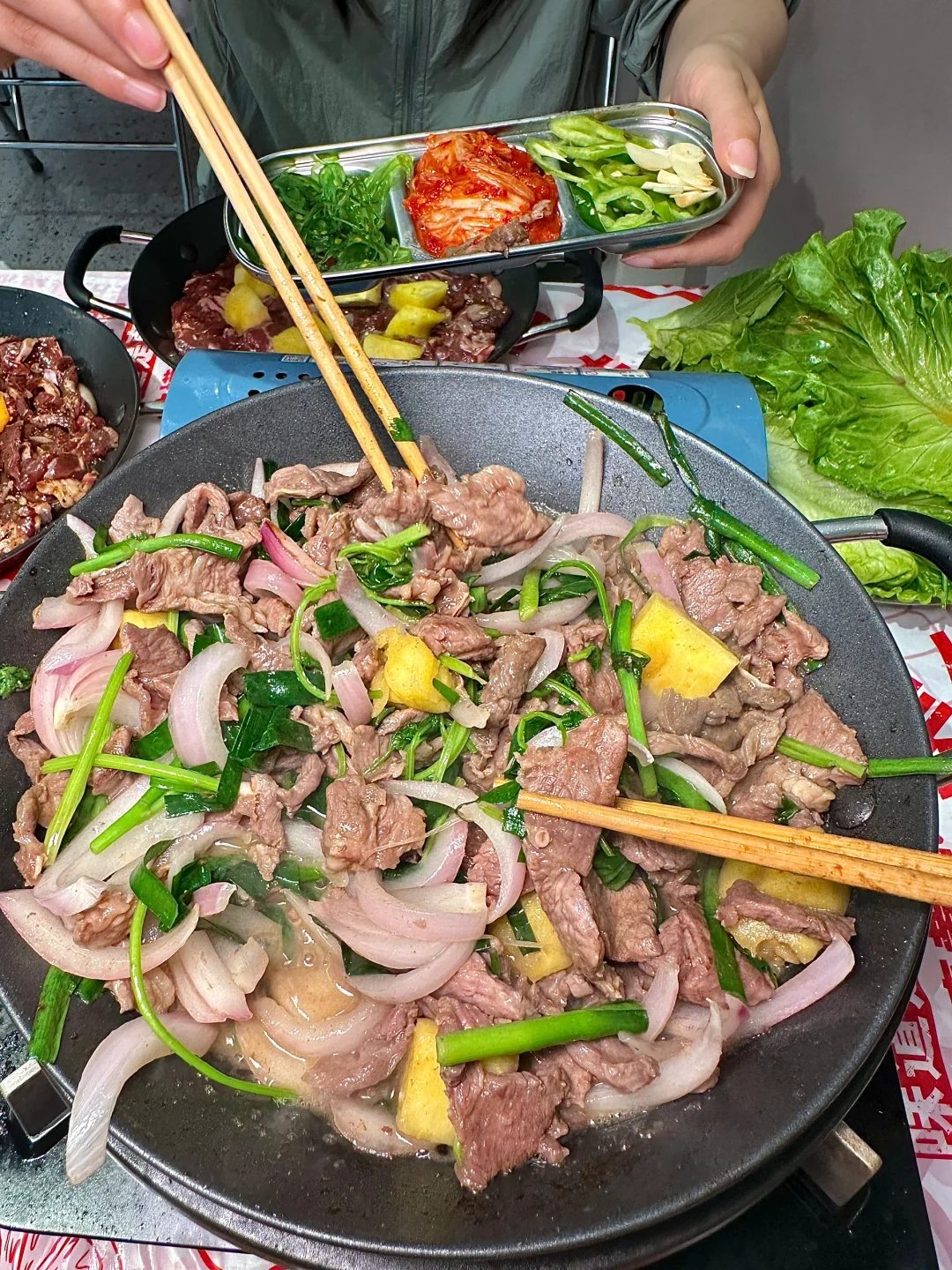 68r原切牛肋条放题!!真的很适合本爱吃肉的穷鬼了……😭 牛肋条都是现切现拌的,肉质肉眼可见的新鲜!!有四种味道,黑椒的、黄油菠萝、紫苏大酱、还有香辣湘派🥩调料,小菜,柠檬茶都是自取不限量的!