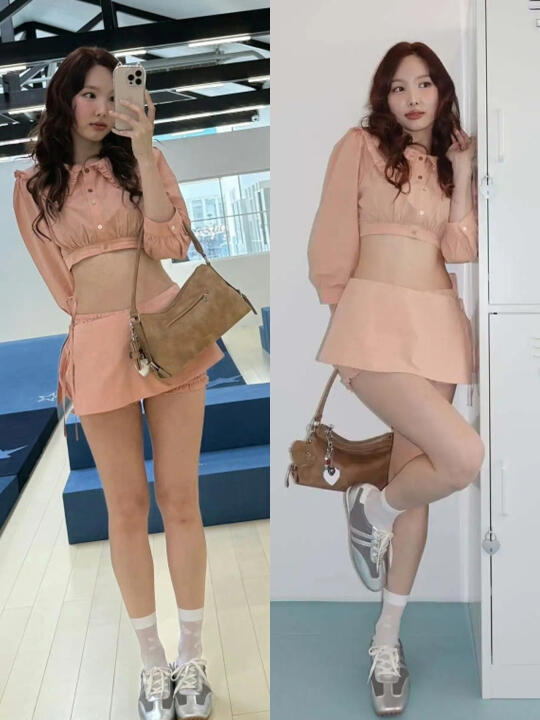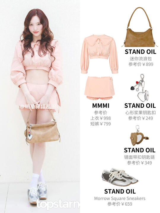 姐妹们看过来,这里有一位可爱到爆炸的萌兔娜琏 她这套粉嫩穿搭也非常甜💗手拎焦糖色迷你流浪包,搭配同色系镜面带扣钥匙链和心形浆果挂饰,可爱又有质感,搭什么都出彩!🍒 脚踩银色芭蕾风运动鞋,复古和甜美完美融合,舒适不失氛围感,从头到脚都是明星级别的穿搭教科书✨ 娜琏真的是是甜妹天花板,姐妹们学起来!