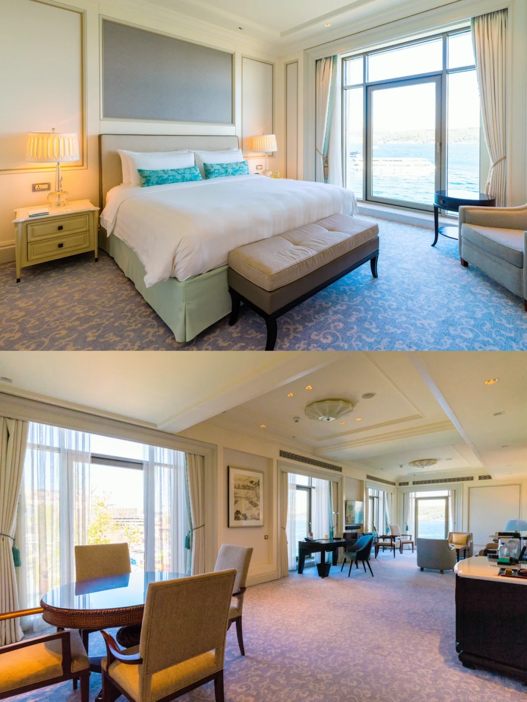 我们这次住的是部分海峡房的豪华房,低饱和度色系为基调很正统的香格里拉房型。窗外有海景,可以看到海峡,但视野并不是非常正。Bug是大部分房型缺个露台。房间内看海峡,不如露台户外看。