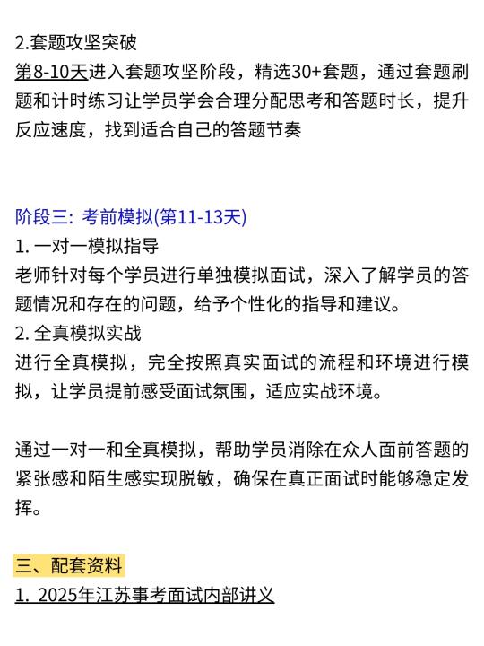 考前模拟阶段→让学员适应实战环境,消除紧张感,实现面试能力的全面提升。