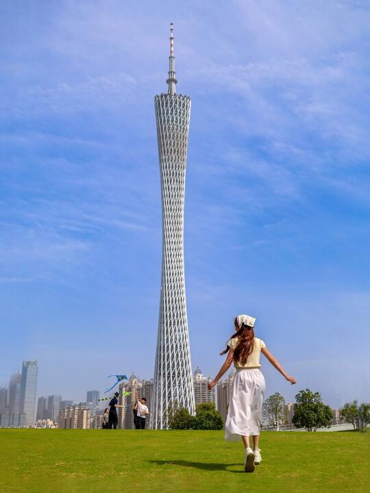 躺草坪就能和广州塔贴贴!野餐垫+风筝=惬意下午