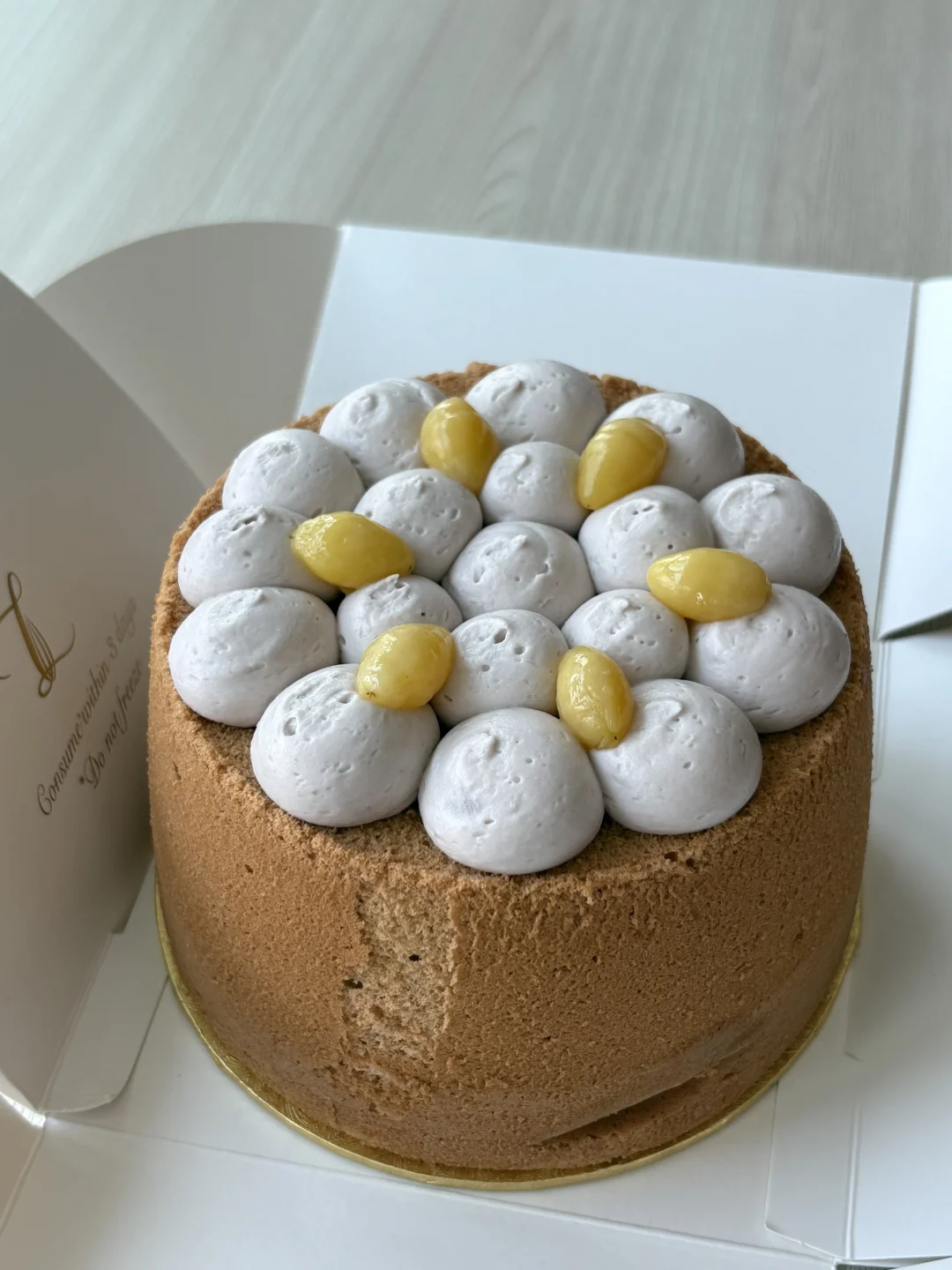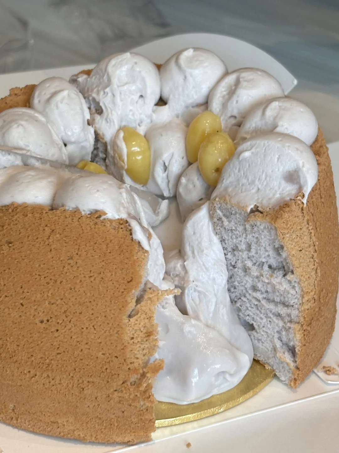 The French Pastry 馋了好久终于吃上😭 芋泥流心非常多 不会很甜 还有几个白果 戚风吃不出别的味道 蘸着芋泥酱吃挺好的[黄金薯R] ✅整体还行 考虑到性价比可以试试 整体是老式朴实选手[自拍R] 但是还是不如国内喜茶lab的芋泥蛋糕好吃!!真正的性价比神😢 30新一大个 三四个人分刚刚好 在Tanjong Pagar附近pick up[黄金薯R]