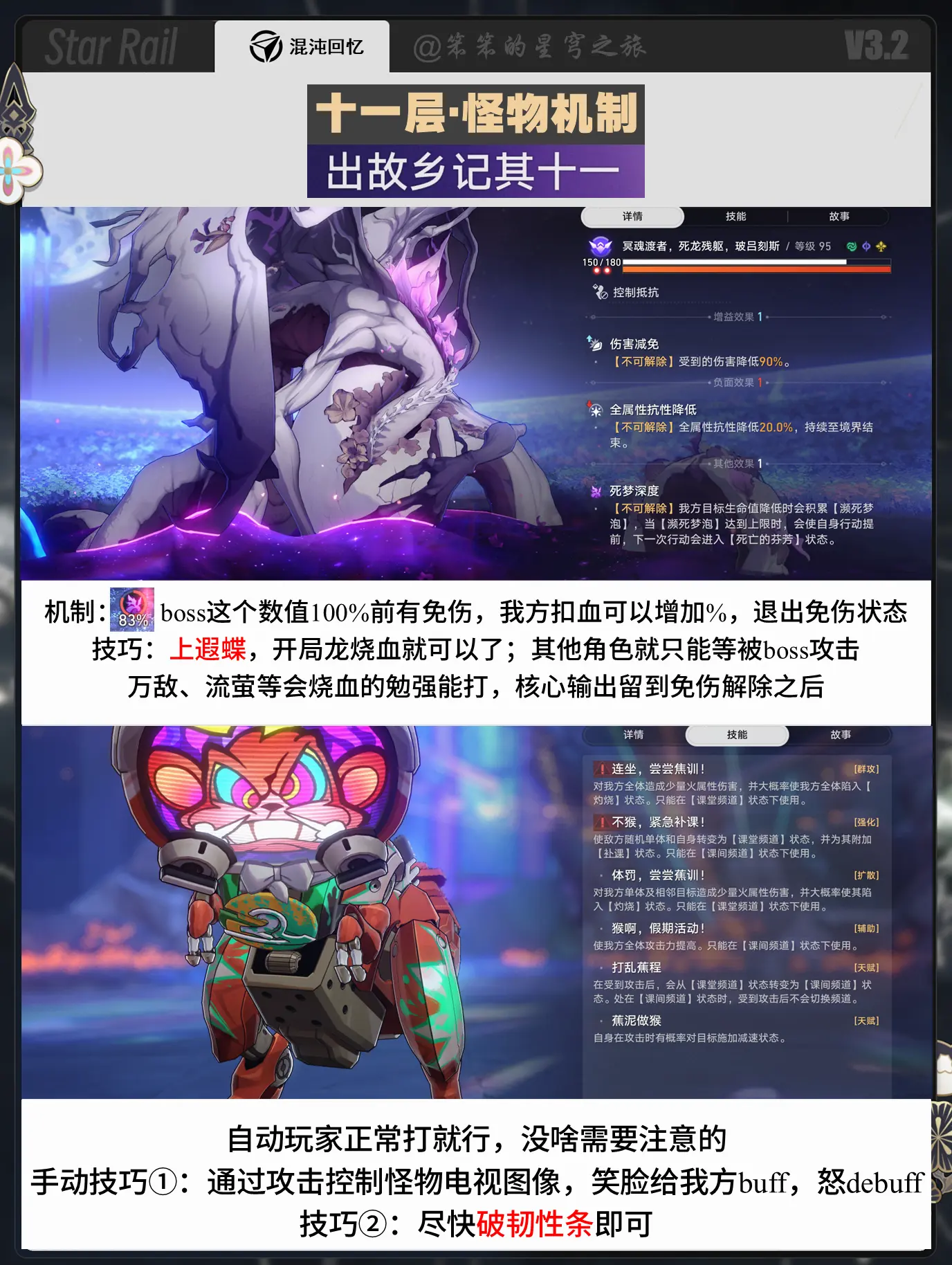 最新一期混沌回忆。崩坏星穹铁道 走过安眠地的花丛 翁法罗斯之旅 🐱大家好,我是笨笨的铲屎官 最新一期混沌回忆来了 这一期12层boss有死龙 所以最好有遐蝶,所有击杀会比较慢 ▶这一期遐蝶、那刻夏和黑塔比较好用 如果有压力,推荐对怪物的机制一定要了解建议 针对怪物机制适当手操