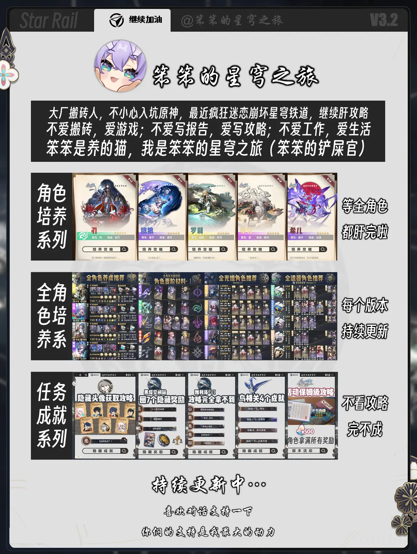 v3.1全角色一图流。🐱大家好,我是笨笨的铲屎官 今天给大家带来的是...