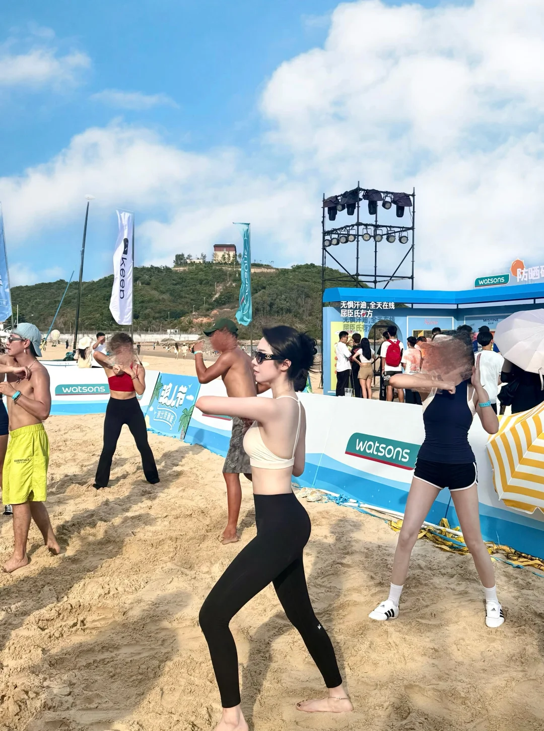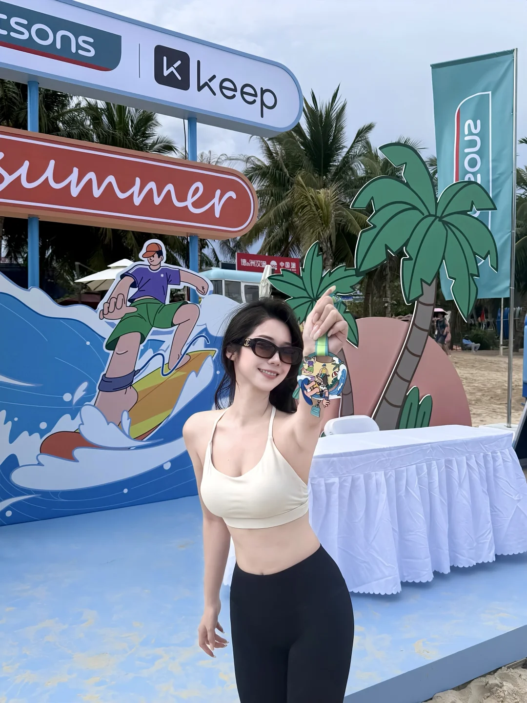 来参加屈臣氏联合Keep浪人节咯~ 屈臣氏互动展位太有意思了,夏日炎炎大家晚记得要做好防晒!才能放开运动玩耍~💗 在沙滩上体验了一节莱美BadyCombat,海风配热血,暴汗燃脂爽到飞起!现场全是运动型男辣妹,荷尔蒙爆棚!💪🏻 这次参加浪人节居然意外收获了一枚奖牌!超开心🏅 白天疯玩,夜晚狂嗨! DJ打碟+特调鸡尾酒+现场这场自由派对,浪出了我的100%潜能!🎇🍸