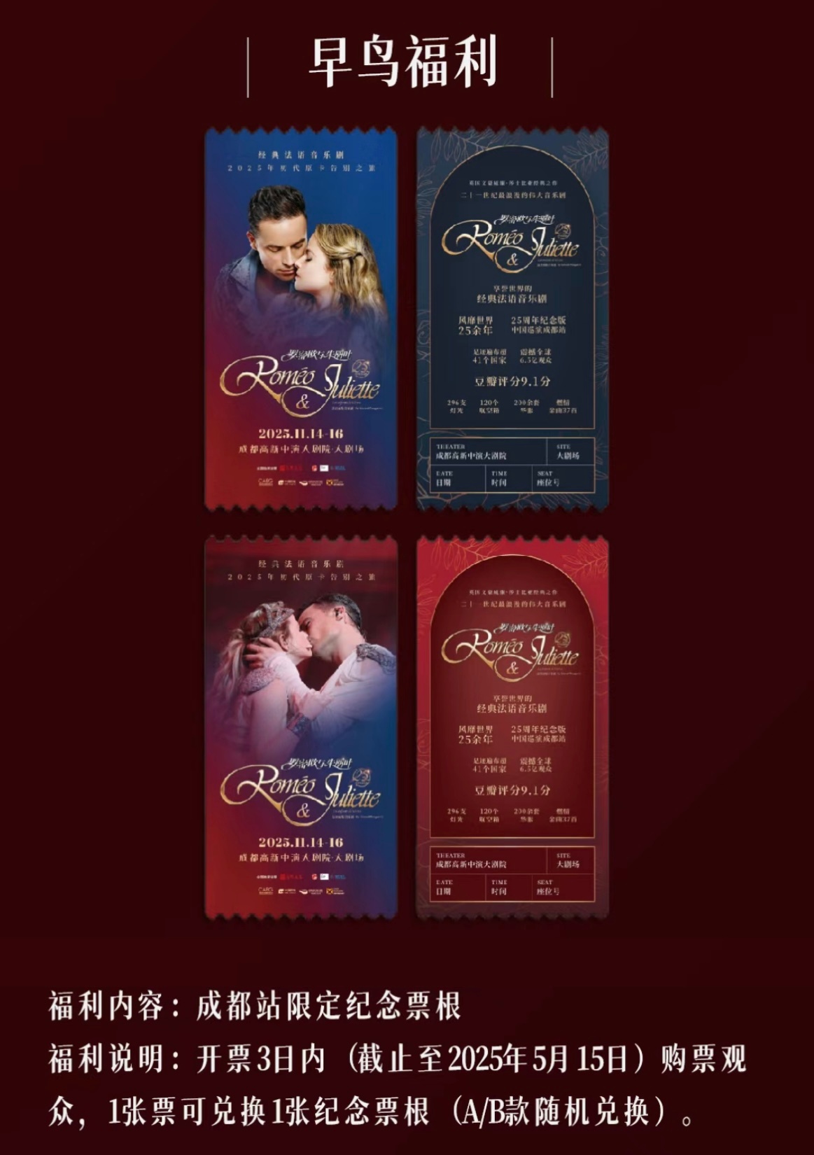 2025第二届成都中演音乐剧节重磅演出!莎翁必看经典,初代原卡最后的告别:法语原版音乐剧《罗密欧与朱丽叶》西南唯一站,今日11:00全网开票!11/14-16 连演五场!与爱再见最后一面,把最长情的爱留给你,用最温情的歌说再见!💘