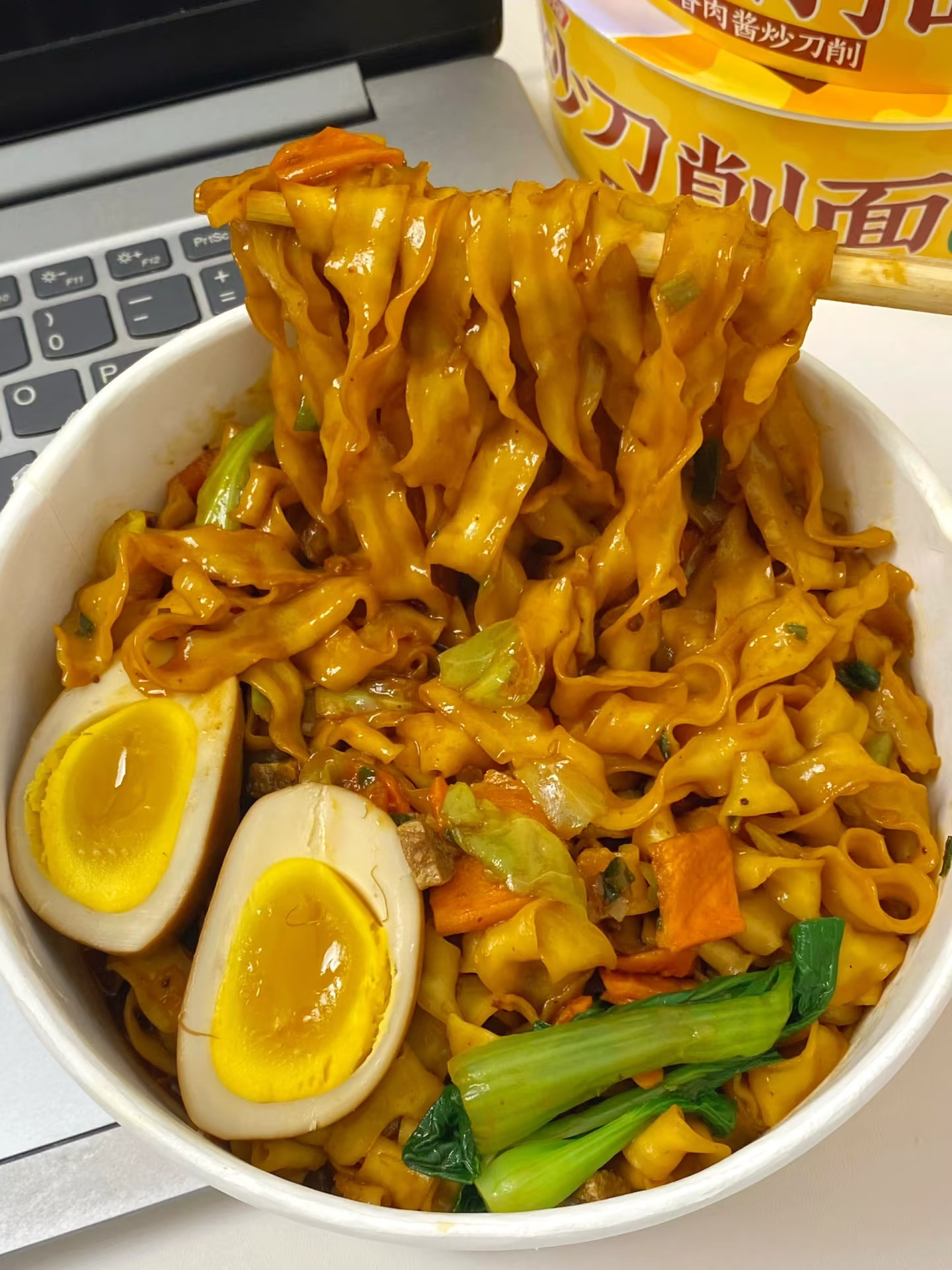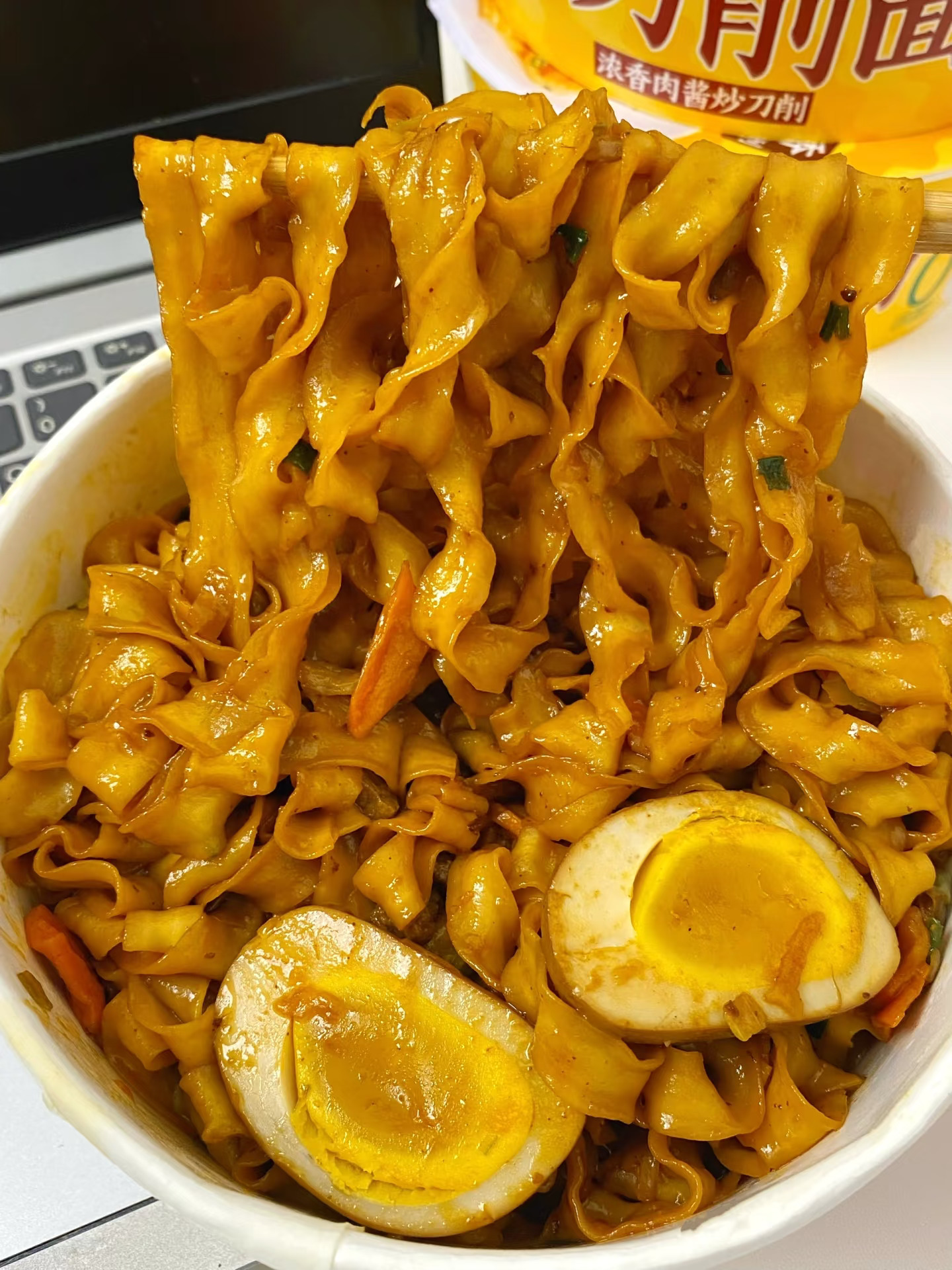 终于找到了这种只要冲泡的炒刀削面! ! 泰泰泰太好吃了! 热水闷泡4分钟就能吃 肉酱爆香,非常浓郁~ 每根面条都裹满了酱汁好吃到舔盘😋 波浪面花中间厚两边薄薄的,自带挂汁的卷边谁懂啊!滑滑的又很有嚼头~🥰 这一碗太适合当宵夜了! 关键面饼还是0油炸的,自律期也可以拿来解解馋 一碗嗦完整个大满足,三分钟嗦光!嗝~