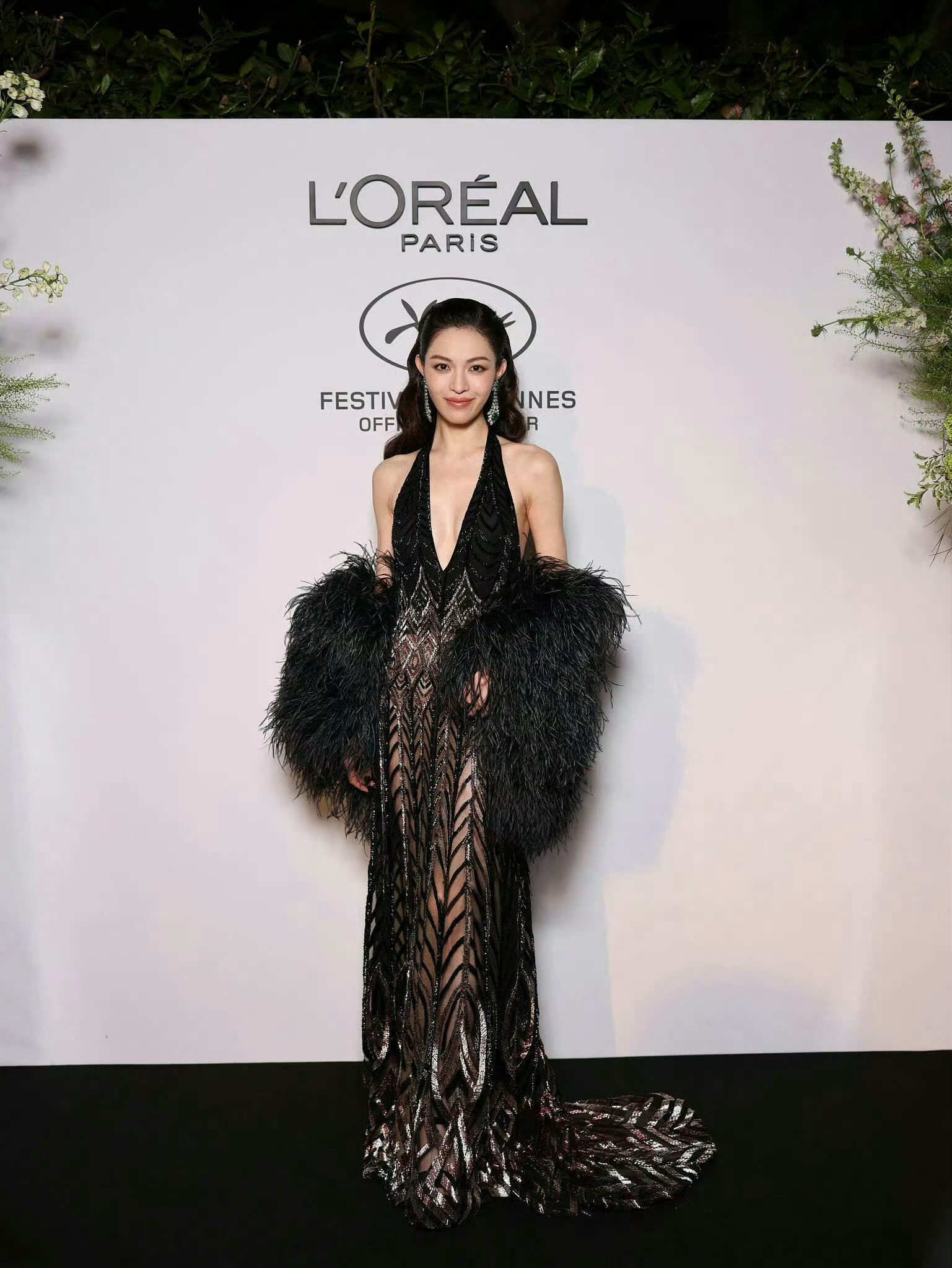 戴燕妮戛纳电影节红毯造型💫闪钻亮片抹胸裙