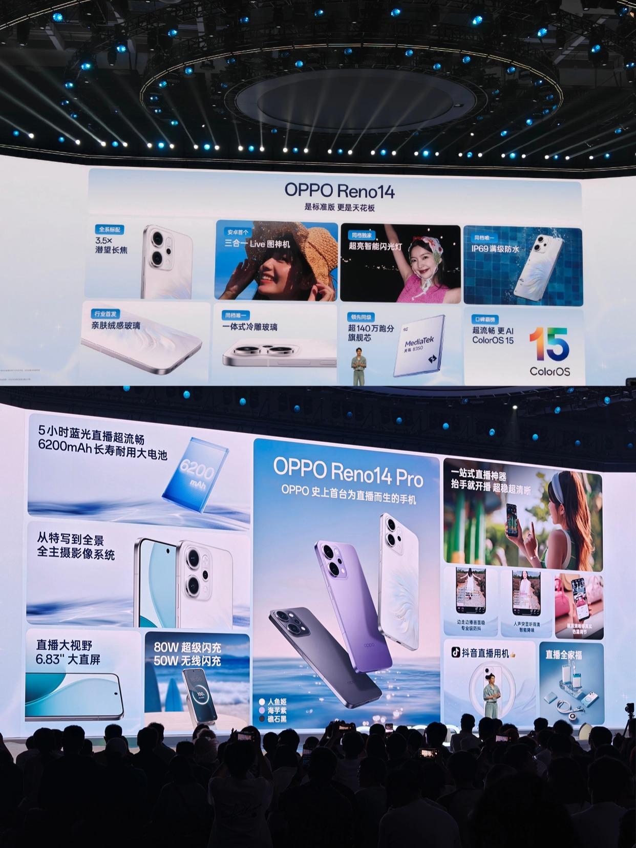 宋雨琦同款OPPO Reno14发布,逆天2379起 人鱼手机OPPO Reno14系列发布啦🧜♀️帮大家划好了重点! - 📱外观 依旧果味十足,iPhone同款冷雕玻璃工艺,全系金属中框,还有独创的流光幻影鱼尾纹理,颜值拿捏的死死的~ - 🖥屏幕 Reno14 6.59小直屏,Reno14 Pro 6.83大直屏,1.5K 120Hz高分高刷,还支持3840Hz高频调光,窄边框好观感 - 📷影像 全系标配3.5X潜望长焦,升级三合一 Live图玩法,高清长焦实况放大也高清,4K视频转实况每帧都清晰,闪光实况照片夜景画面更具生命力~ 🙋♀️Reno14 Pro还是直播神器,一键开启防抖、降噪、微距、色温调节,直播画质清晰又稳定 - 🔋续航 Reno14配备6000mAh电池,支持80W闪充,Reno14 Pro配备6200mAh电池,支持80W闪充+50W无线,电池增大机身还更轻薄 - 🚩其它 全系支持IP66/68/69满级防尘防水,X轴马达、立体双扬、多功能NFC、红外遥控全都有~ - 🫡这个配置确实全面啊,Reno14国补后起步2379,Reno14 Pro国补后起步2999,价格也很有诚意,大家觉得能给多少分呢?
