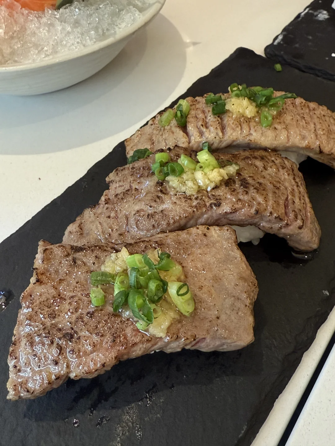 我吃后最大的感受就是,这种日料的进化,随着国内的在地化研究,简直太牛了。胡椒脑花、奶油牛油果、大块嫩牛肉、榴莲寿司,每一款都让人不自觉地高呼过瘾,虽然注重仪式,但是口味绝对算上是西安寿司里的好吃的。