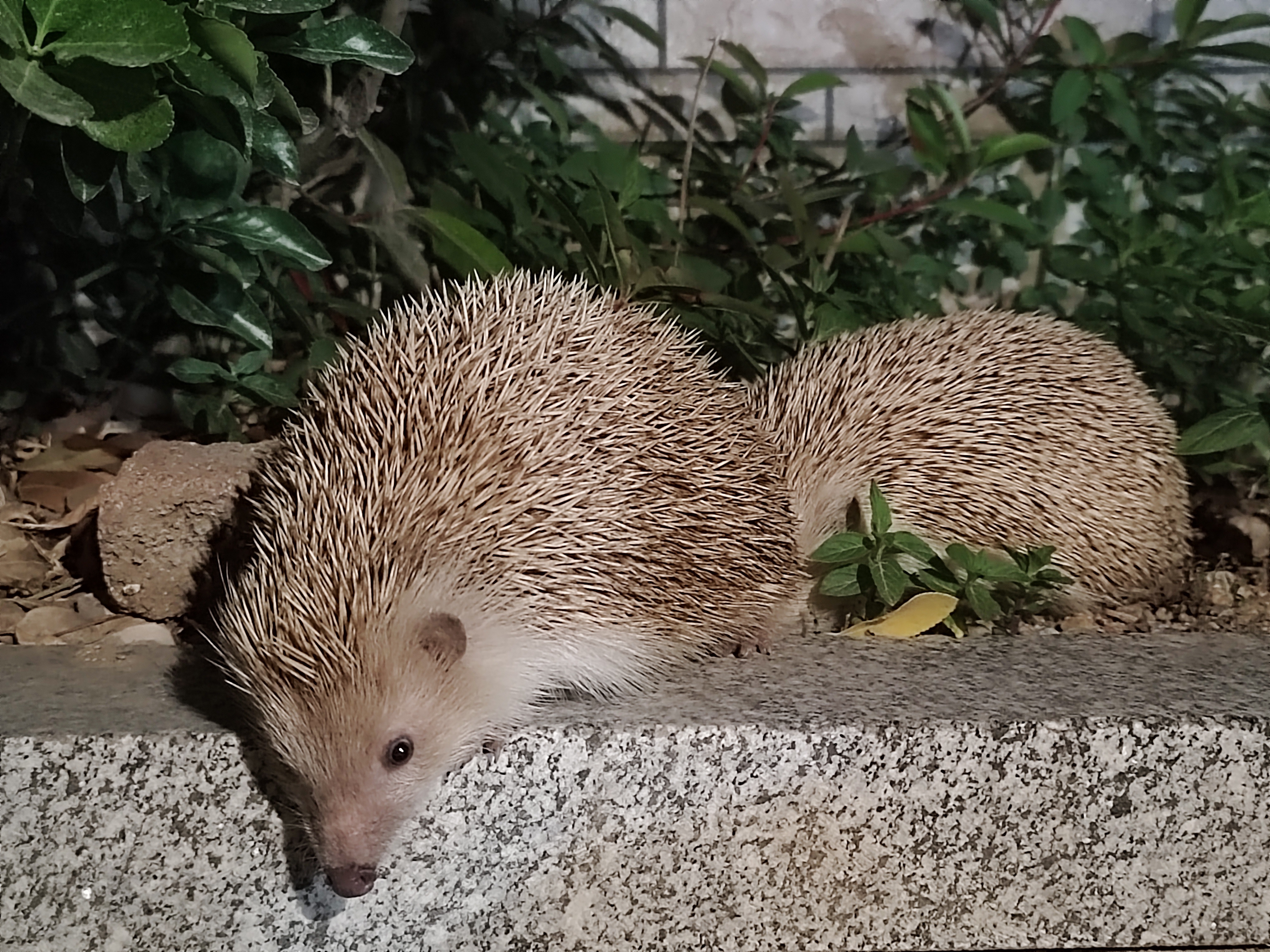 刚刚在院子里听到淅淅索索的声音,我这耳朵已经练出来了,一听就知道是小刺猬,果然,很快就发现这俩小兄弟正散步呢~