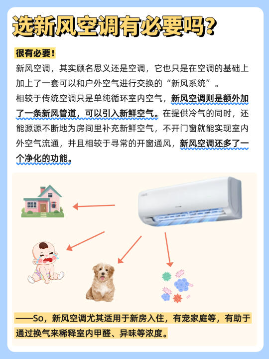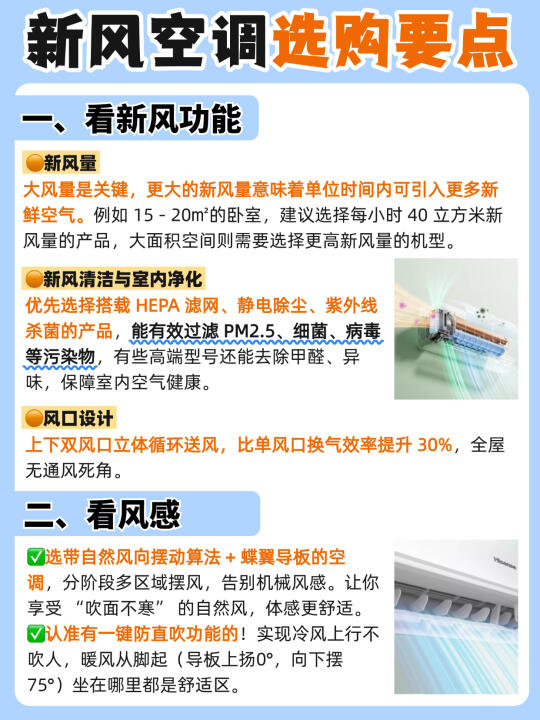 做了很多功课发现💨新风空调除了能够👉🏻提供冷风、热风、抽湿等基础功能之外,还能对空气进行循环,净化