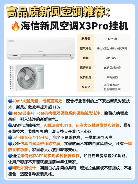 不知道选什么的朋友,可以考虑这款❄️海信新风空调X3Pro挂机