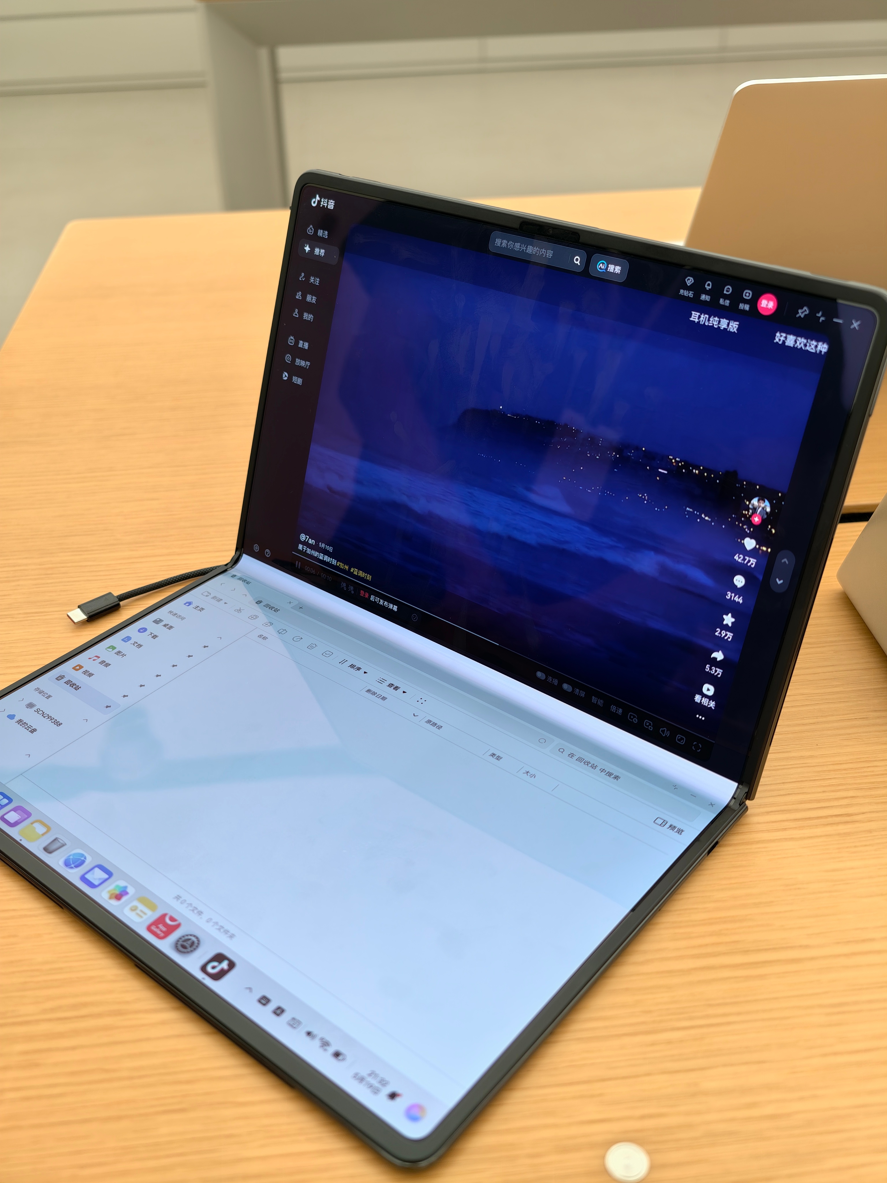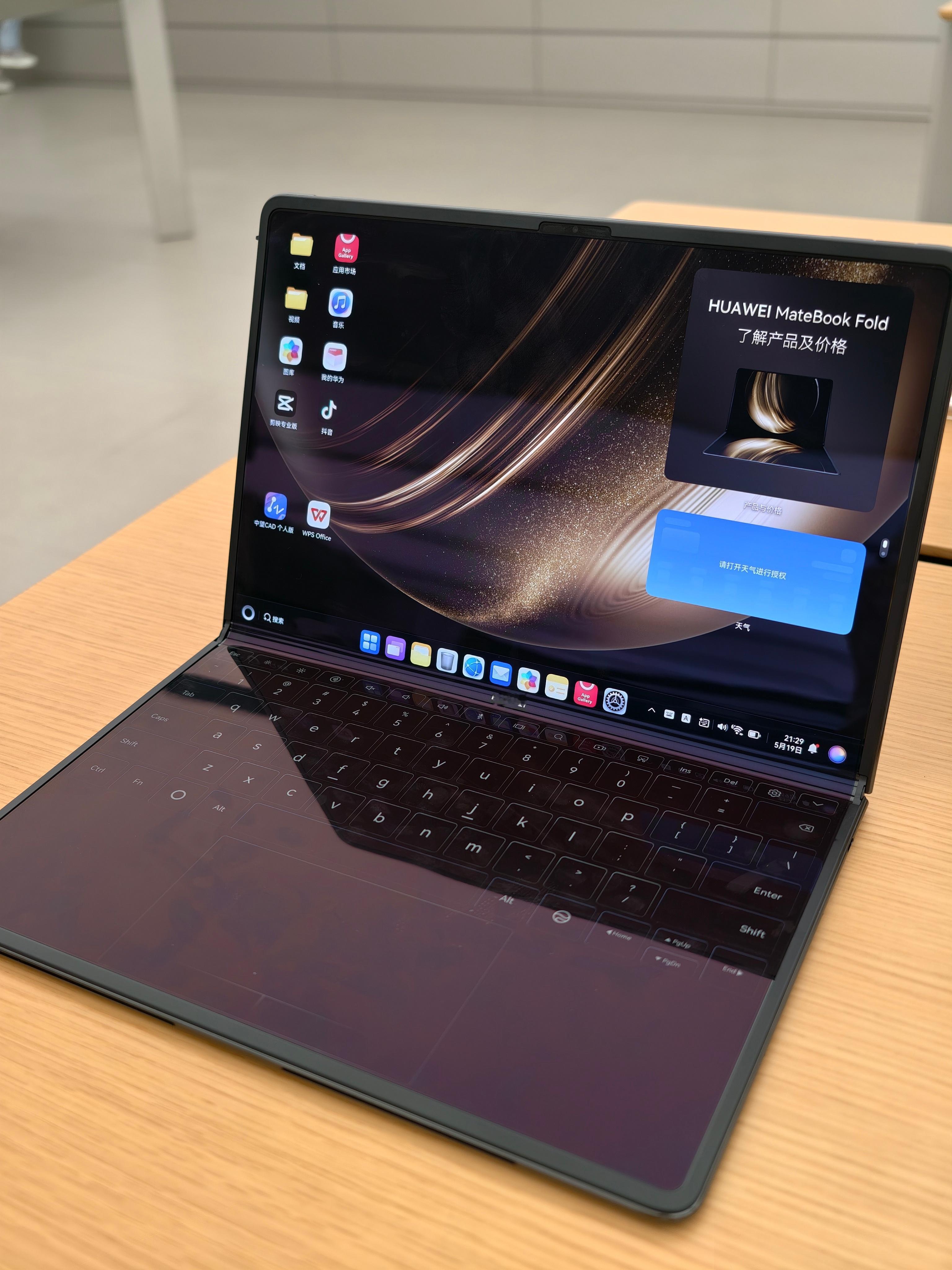 华为MateBook Fold鸿蒙折叠电脑真机上手图: 已经好多年没有体验过这种无比心动的感觉了,这台华为折叠电脑上手体验后真的觉得太惊艳太科幻了,马上预订一台。[色][色]不知道能不能买到呢?
