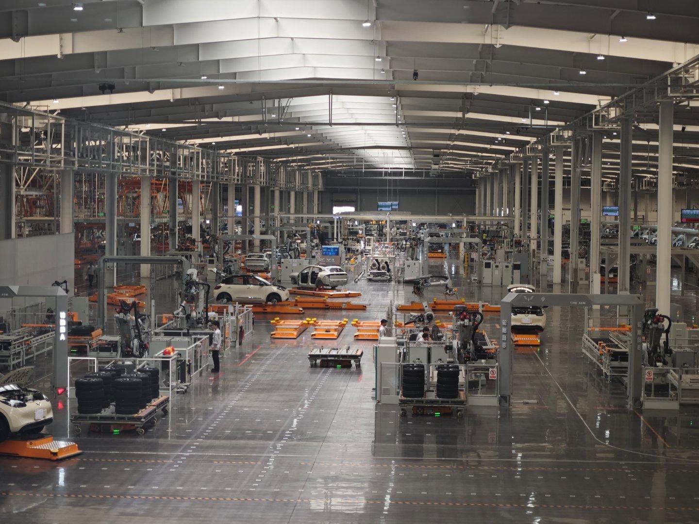 来五菱工厂参观一下,这工作一点也不累,几乎全自动。