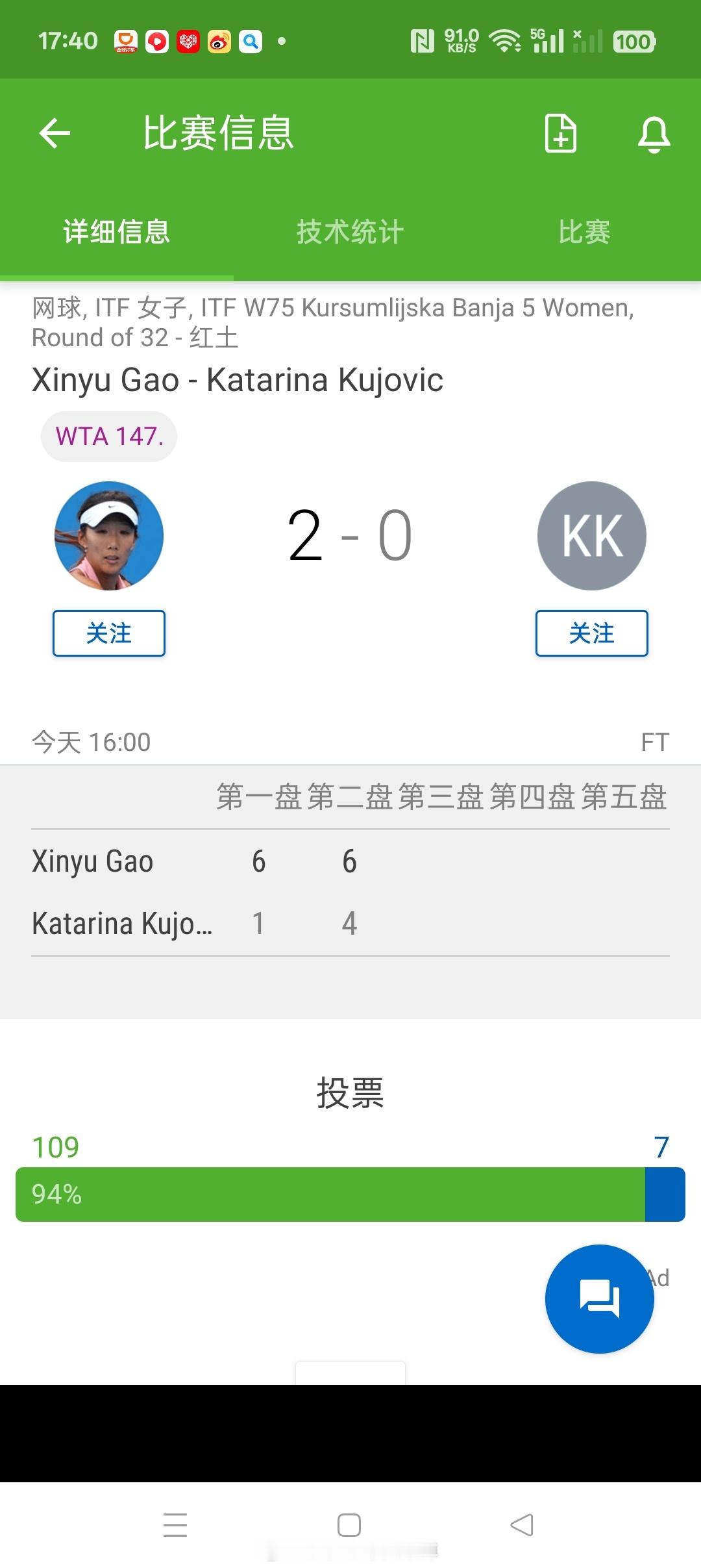 🇨🇳高馨妤头号种子高馨妤6-16-4击败🇧🇪球员库约维奇晋级第二轮