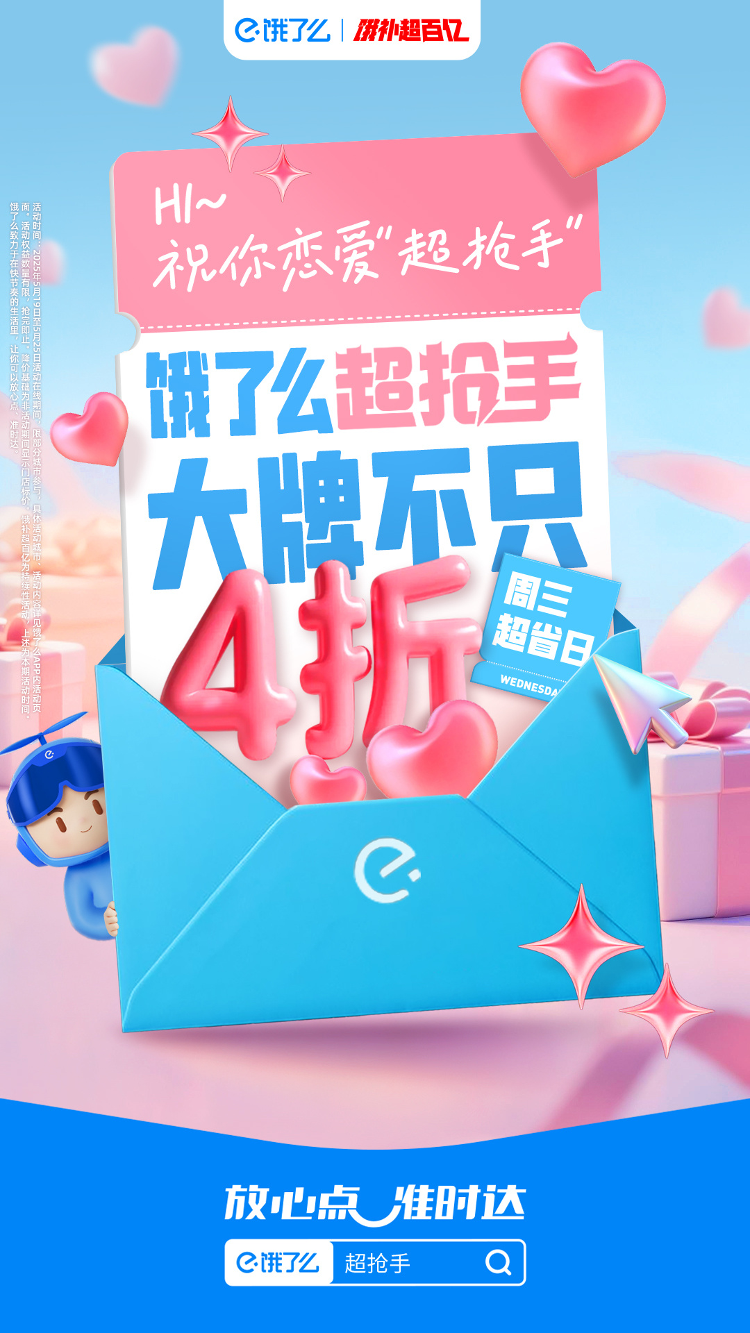爱是等待,爱也是不再等待,爱是按下发送键“今晚要不要一起吃饭”。今天是表达爱的节日,一起借饿了么的美食给爱的TA送上告白祝福吧~上饿了么搜【超抢手】,大牌抢手货就和crush一样精品,奈雪的茶、挪瓦咖啡等超多大牌~每周三超省日都得囤上一周美食券,完全是被饿了么超抢手硬控的521!请记住,生活很忙,但不要错过晚霞;工作很累,但不要错过每一个传达爱的机会。用饿了么超抢手大牌券,囤上每一份专属爱意,和爱的TA一起把平凡的日子过出花。饿了么超抢手 饿了么祝你恋爱超抢手