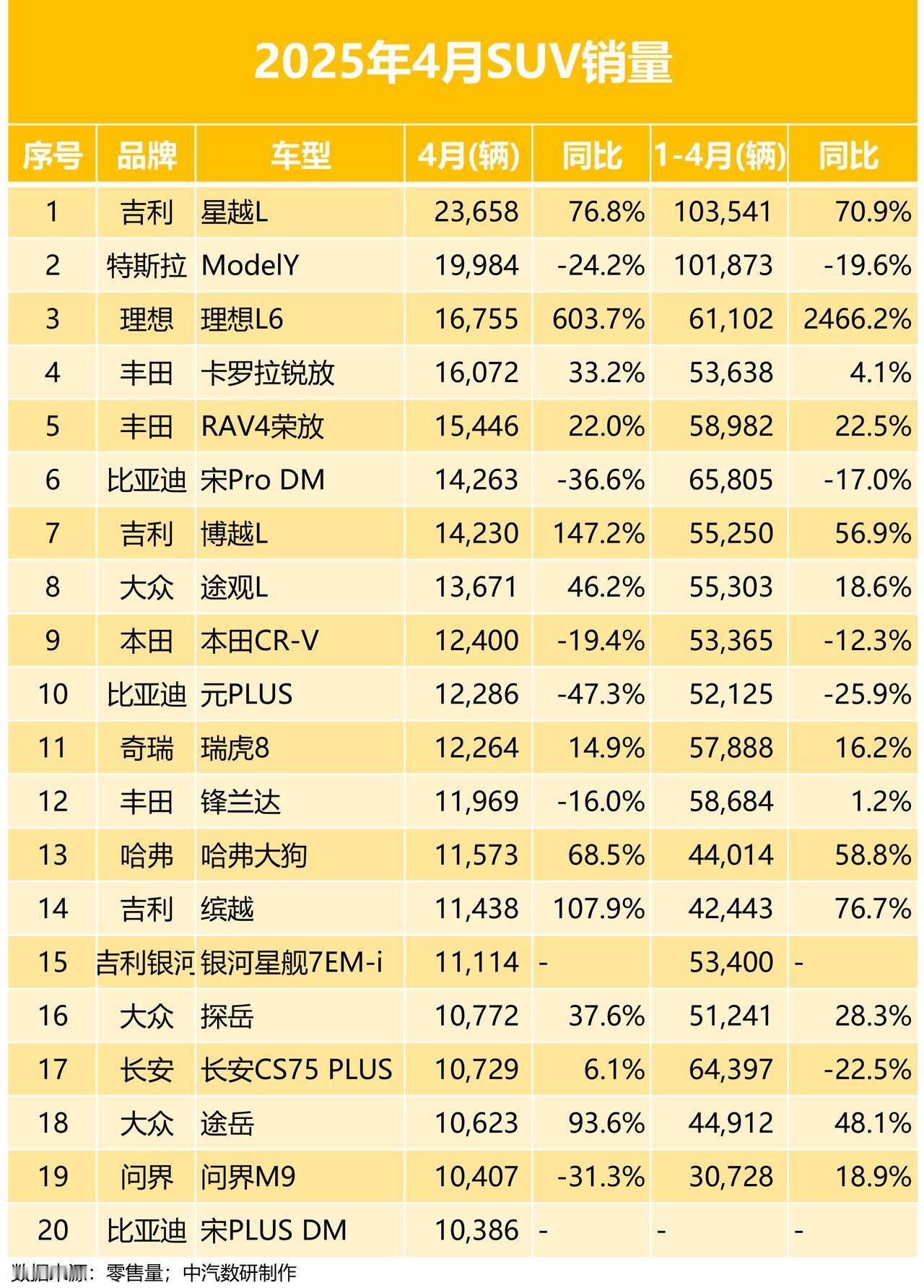 2025年5月新能源SUV销量排行榜公布,比亚迪四款车霸榜。5月新能源SUV战场